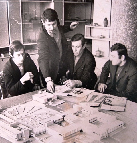 На снимке архитекторы Душанбе В. Бродовский, Э. Ерзовский, Ю. Пархов, Ю. Сероклинов. 1973 год.