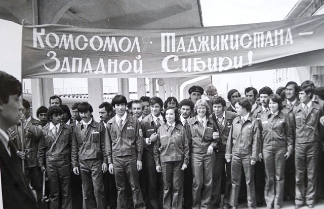 Комсомольцы — посланцы Душанбе выезжают на строительство крупных народнохозяйственных объектов в Западную Сибирь РСФСР. 1976 год.