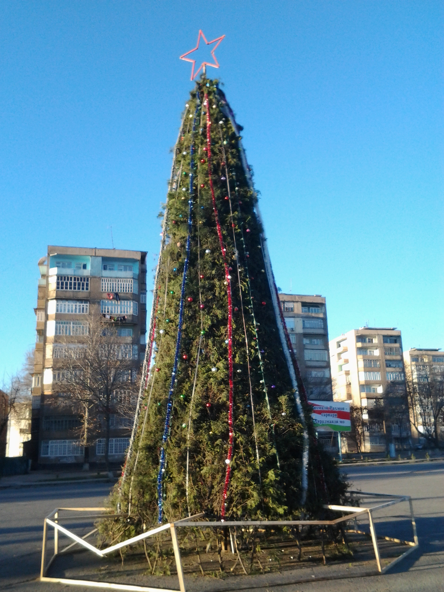 (Новогодняя ёлка на площади Сомони в городе Турсунзаде)