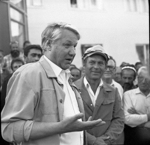 Первый заместитель председателя Госстроя СССР Ельцин Борис Николаевич в гостях у строителей Рогунской ГЭС. 1 сентября 1989 года.