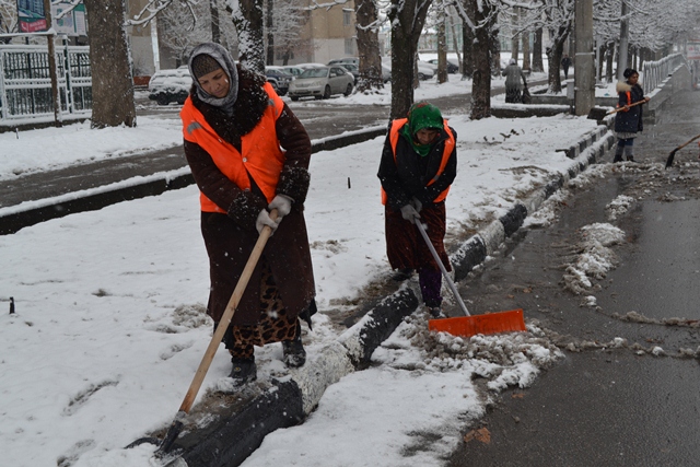 Для нас не существует мороза или жары. Например, вчера пошел снег, но мы работали. Я работаю с 7 утра до 5 вечера. Получаю 740 сомони, но руководство города заботится о нас, периодически выплачивает нам премиальные и делает другие поощрения. В прошлом году в День матери — 8 марта — мэр города М.Убайдуллоев выдал нам премию по 1000 сомони, за что я ему очень благодарна.