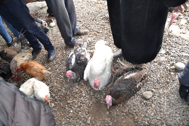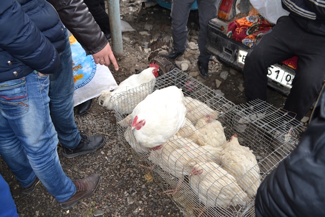На рынке большой ассортимент различных птиц: от декоративных – попугаев, канареек, голубей, до домашней птицы – индюков, кур, гусей, уток. Можно приобрети и кроликов.
