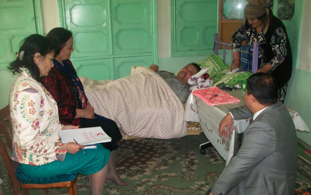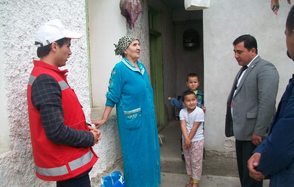 Наша благотворительная поездка началась с джамоата Ёва, пригорода города Худжанда. Я поинтересовался у волонтеров, из чего состоит продуктовый пакет, который в ходе посещения в виде единовременной материальной помощи передают волонтеры ОКПТ членам малоимущей семьи. Нехитрый набор основных продуктов: десятикилограммовый мешок муки, растительное масло, сахар, макароны, пару пачек чая, несколько буханок свежего хлеба… «На первый взгляд, выглядит незначительно, ведь в наше время, когда цены растут не по дням, а по часам, для малоимущей многодетной семьи, на попечении которой еще и инвалид, это поддержка на пару недель, — говорит почетный председатель областного филиала ОКПТ, секретарь Согдийского областного комитета Компартии Таджикистана   Курбонджон Мирзоева.  – Но это не единовременная акция, приуроченная к празднику. Такие семьи мы посещаем на постоянной основе. Кроме этого, для  людей этой категории – инвалидов, пенсионеров, одиноких важна не столько материальная помощь, сколько  внимание и забота, в которой они очень нуждаются».