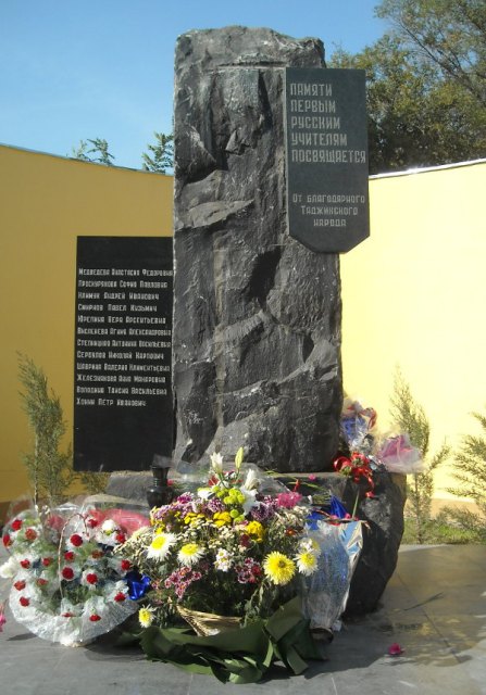 Пять лет назад в Худжанде был открыт 3,5-метровый гранитный монумент в память о двенадцати русских учителях, которые в 1922 году приехали сюда, чтобы бороться с безграмотностью. Памятник установлен на территории худжандской гимназии №1, и сюда очень часто приносят живые цветы. На фоне стараний отказаться от всего, связанного с СССР, в остальной части страны — этот факт очень удивляет.