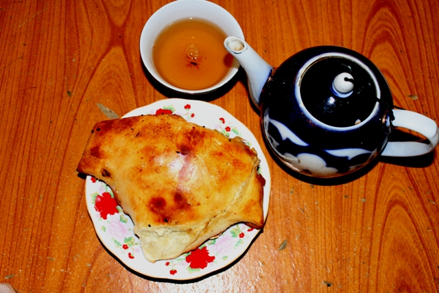 Вообще, ее очень сложно назвать самбусой, это целый мясной пирог, наесться которым могут сразу два человека, если не три. Готовят «амбарой» в тандыре; для начинки режут мясо на маленькие кубики, смешивают его с нашинкованным луком и заправляют наваристым мясным бульоном. Стоит такая самбуса 15 сомони, продается она на рынке «Панчшанбе».