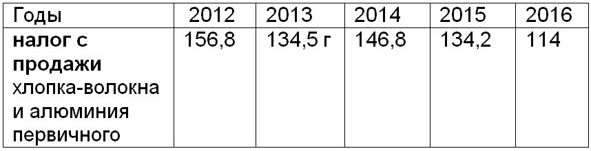 В 2015 г., согласно расчетам Минфина, налоги с продажи хлопка-волокна и алюминия первичного составили всего