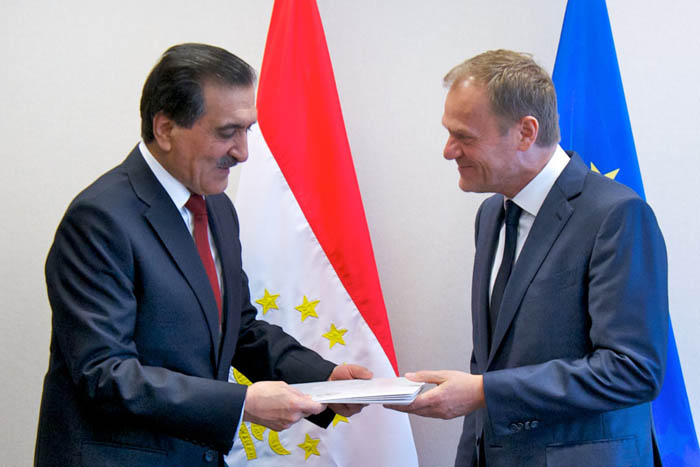 Чрезвычайный и Полномочный Посол, Постоянный представитель Республики Таджикистан при Европейском Союзе Эркинхон Рахматуллозода вручил сегодня верительные грамоты Президенту Совета Европейского Союза Дональду Туску.
