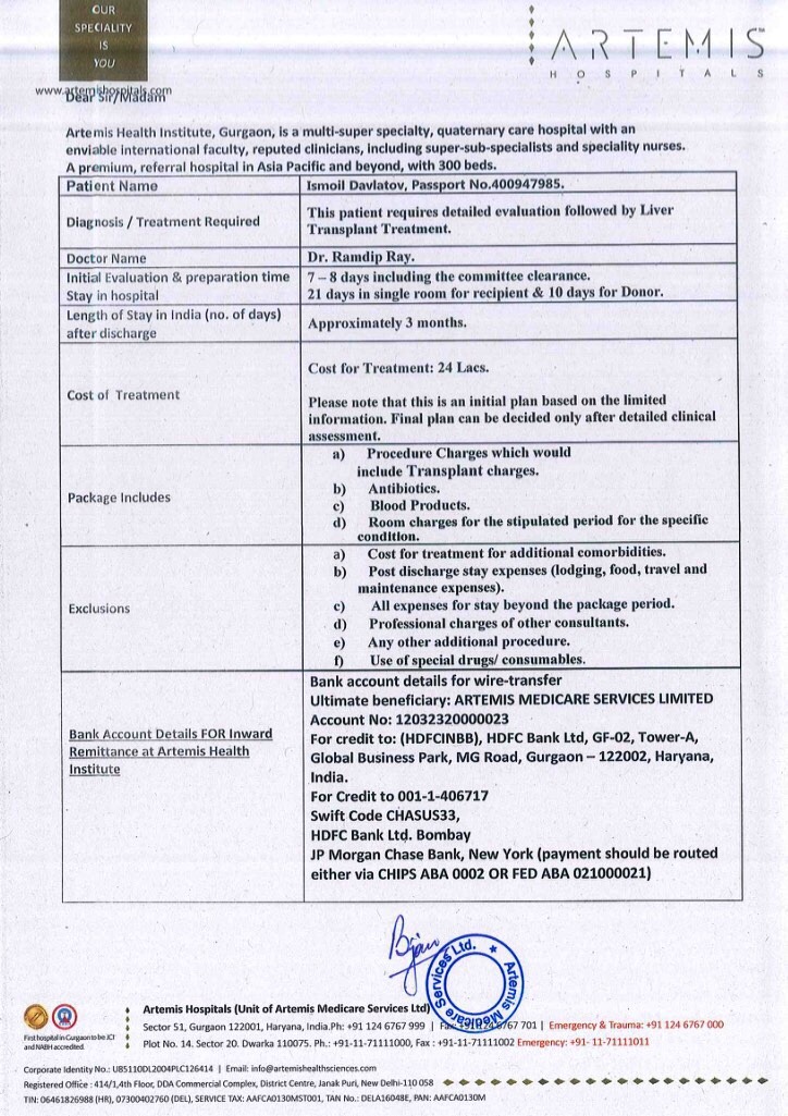 Сейчас Исмаил получает поддерживающее лечение, но врачи торопят, времени у него слишком мало. Клинику семья Исмоила нашла в Индии, но операция очень дорогая. С учетом перелета и дальнейшей реабилитации потребуется 36 тыс. долларов.