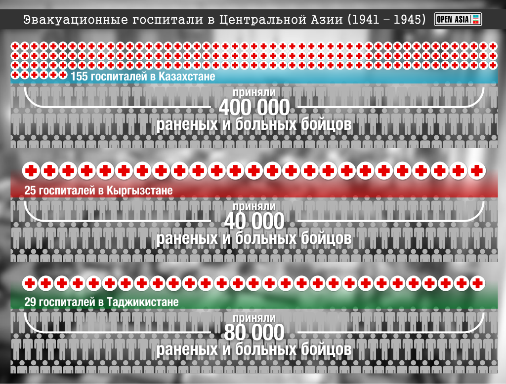 В свое время американские исследователи задались вопросом – отчего зависит успех в войне: от действий армии или от тыловой поддержки? Тогда же появился образ: вооруженные силы – это зубы, тыл – челюсти. Американцы пришли к мнению, что во время Второй мировой войны их успех на 15% зависел от армии и на 85 – от работы тыла. На постсоветском пространстве таких сравнений не делали, но роль тыла в Победе 1945 года никогда и никто не ставил под сомнение. На долю Центрально-Азиатского региона, находящегося в тысячах километрах от линии фронта, как раз и выпала ответственность за достойное обеспечение тыла. Оказывали эту поддержку по-разному: сюда переселяли жителей оккупированных территорий, переводили заводы и фабрики, разворачивали оборонную промышленность. Но, пожалуй, одним из главных направлений работы в тылу стало лечение раненых бойцов и командиров Советской Армии.