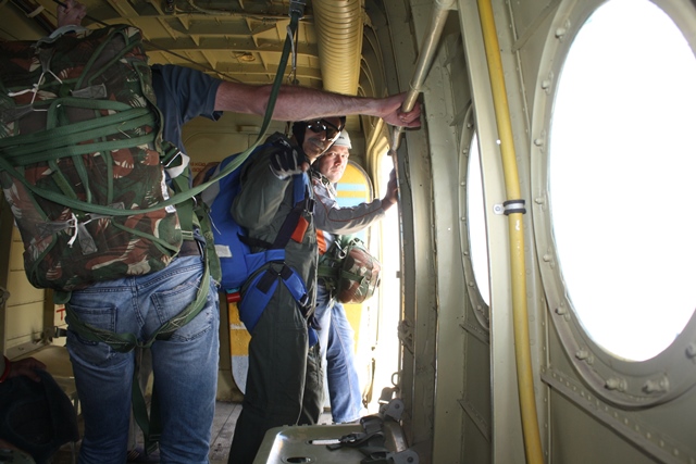 После набора высоты инструктор открывает выход, командует: «Приготовились!» и жестом указывает мне на «исходку». Встаю, а ноги будто деревянные, не слушаются.