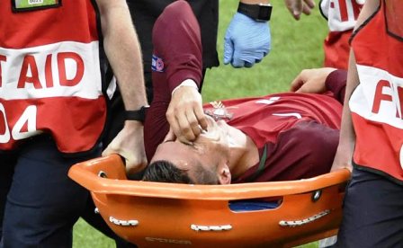 В первом тайме финального матча Евро-2016 сборная Португалии потеряла своего сильнейшего игрока: в столкновении с Димитри Пайетом травму колена получил Криштиану Роналду. Он смог отыграть еще несколько минут, но затем попросил замену, и с поля его унесли на носилках. Вместо Роналду на поле вышел Рикарду Куарежма.
