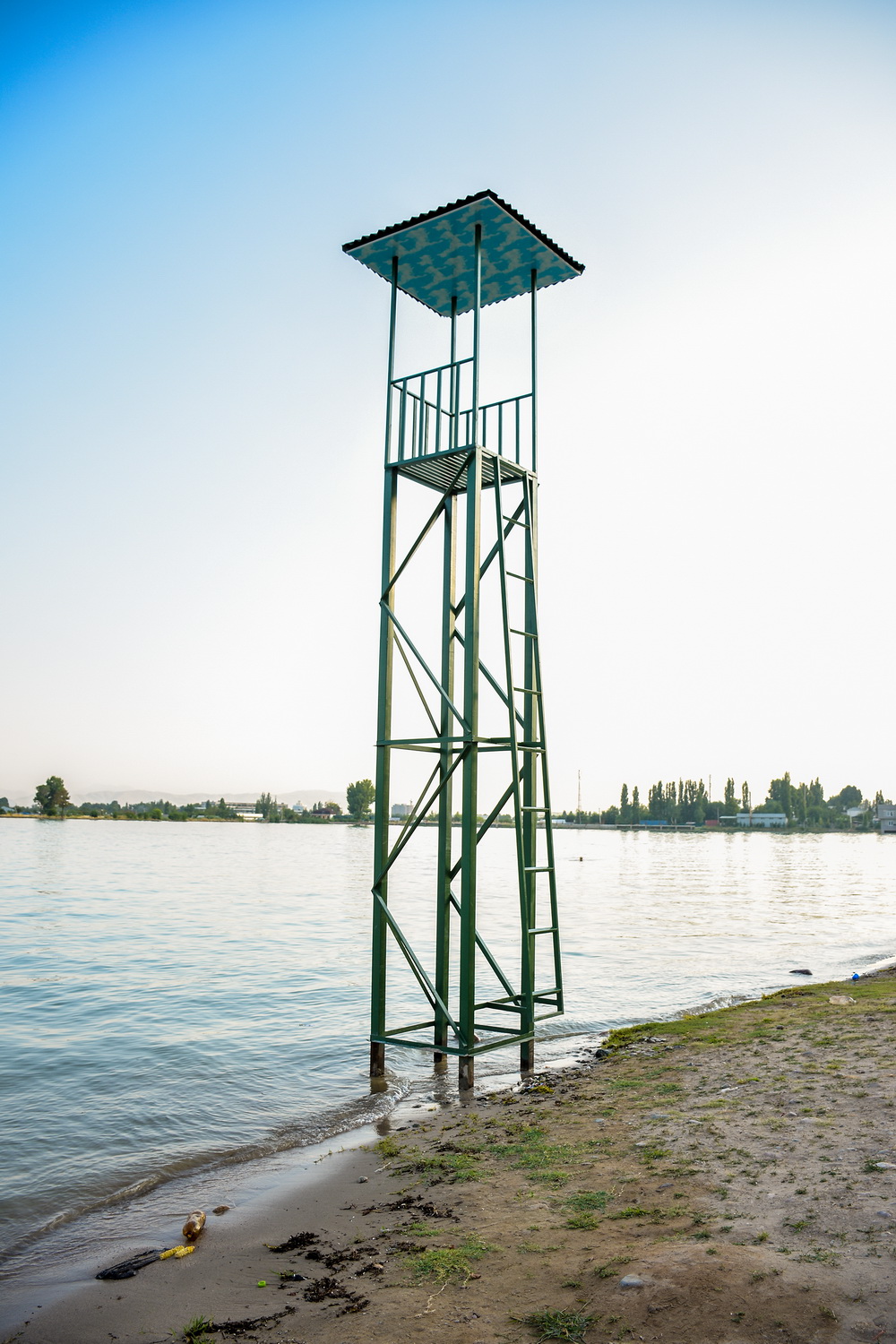 Пляж конечно грязный, зато стоит спасательная вышка. Самого спасателя нет. Может выходной?