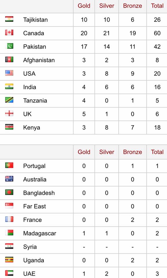 По итогам восьмого дня Юбилейных игр лидирует Канада, у которой 60 медалей (20 – «золото», 21 – «серебро», 19 – «бронза»). На втором месте идет сборная Пакистана с 42 медалями (17, 14, 11).