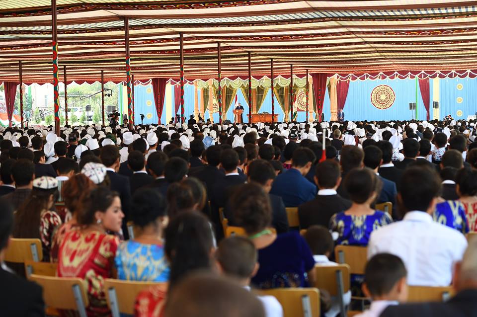 Э.Рахмон заявил, что в годы гражданской войны в стране сфера образования была полностью парализовано, в некоторых районах и городах были сожжены школы. Только в Вахшской долине, по его словам, были уничтожены сотни школ, сожжены сотни тысяч книг. «После достижения мира и согласия в республике, во всех регионах страны построены свыше 2,5 тыс. школ, программа компьютеризации общеобразовательных школ выполнена на 111%», — подчеркнул президент.