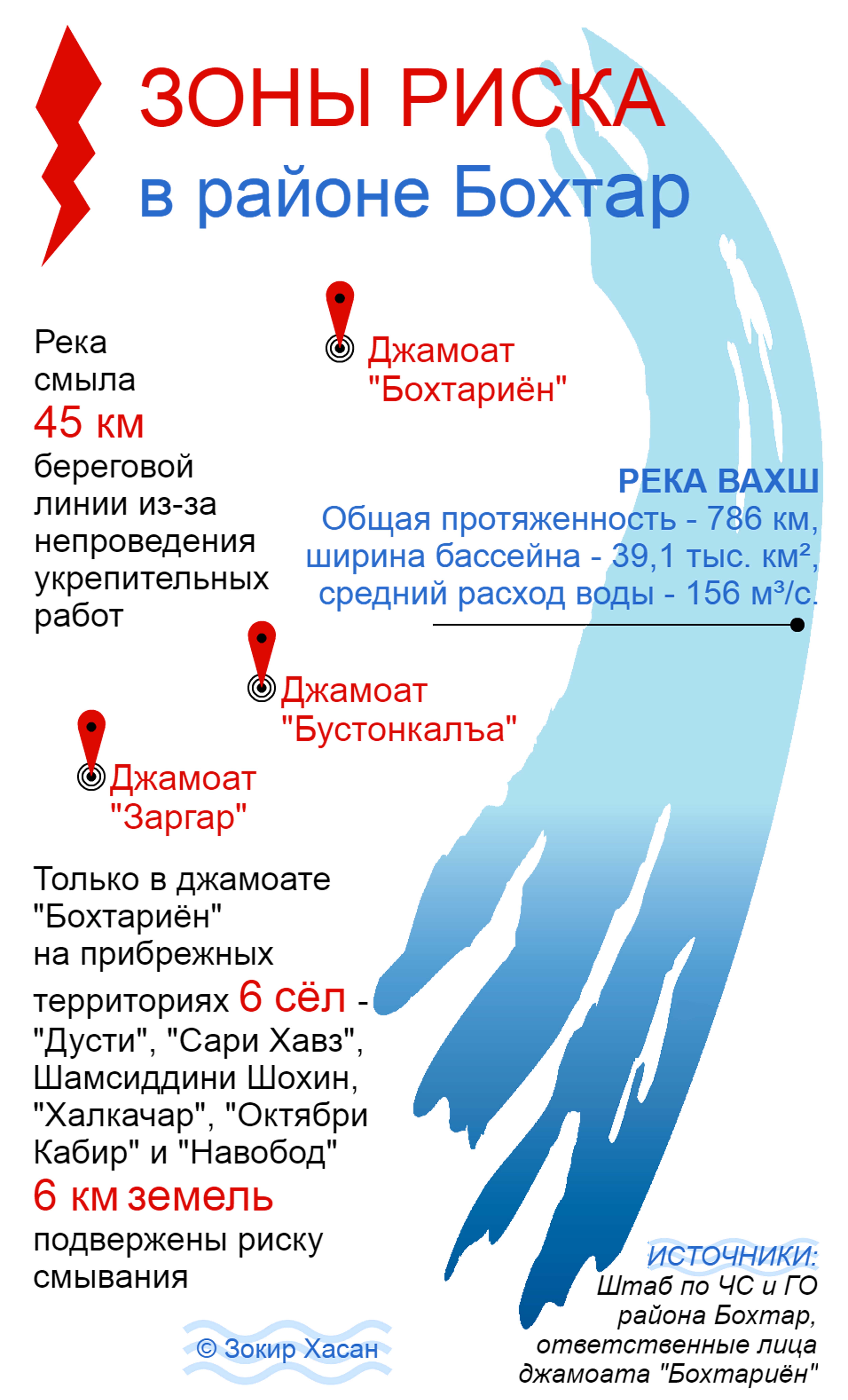 «Данный участок находится в опасном месте. Мы планируем переселить 83 семьи этого кишлака в безопасное место, согласно специальной программе, которая должна завершиться в 2020 году. С 2010 года мы переселили 20 семей, и уже на днях к ним присоединятся ещё три. В течение последних трех лет река Вахш смыла боле 3,5 га земли», — сообщил А.Юнусов.