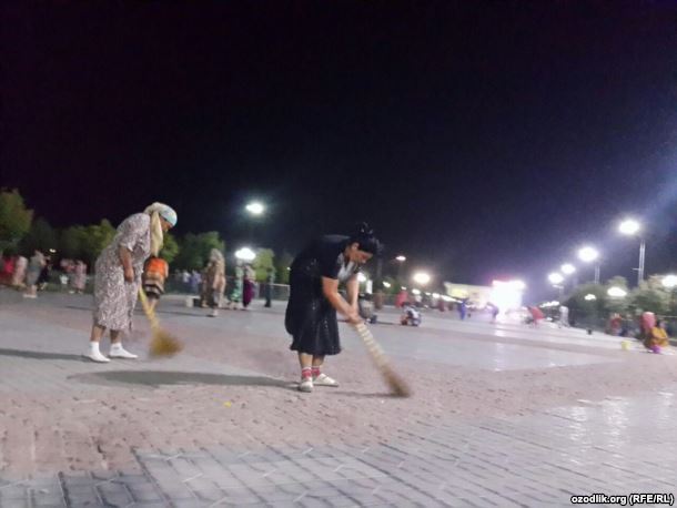 "Озодлик" также сообщила об активности в центре города, опубликовав несколько фотографий, на которых уборщицы метут освещенные фонарями улицы.