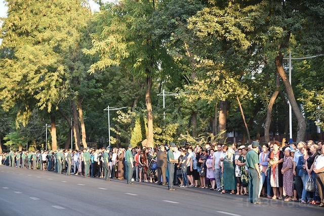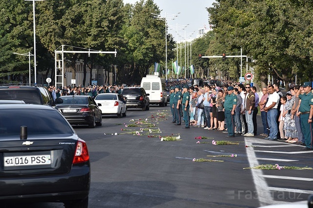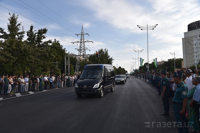 Катафалк с телом покойного президента проследовал по центральным улицам столицы в аэропорт, откуда его самолетом доставят в Самарканд, где он будет похоронен через несколько часов.