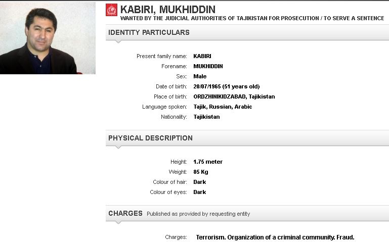 Отмечается, что 51-летний М. Кабири разыскивается судебными властями Таджикистана за «терроризм, организацию преступного сообщества и мошенничество».
