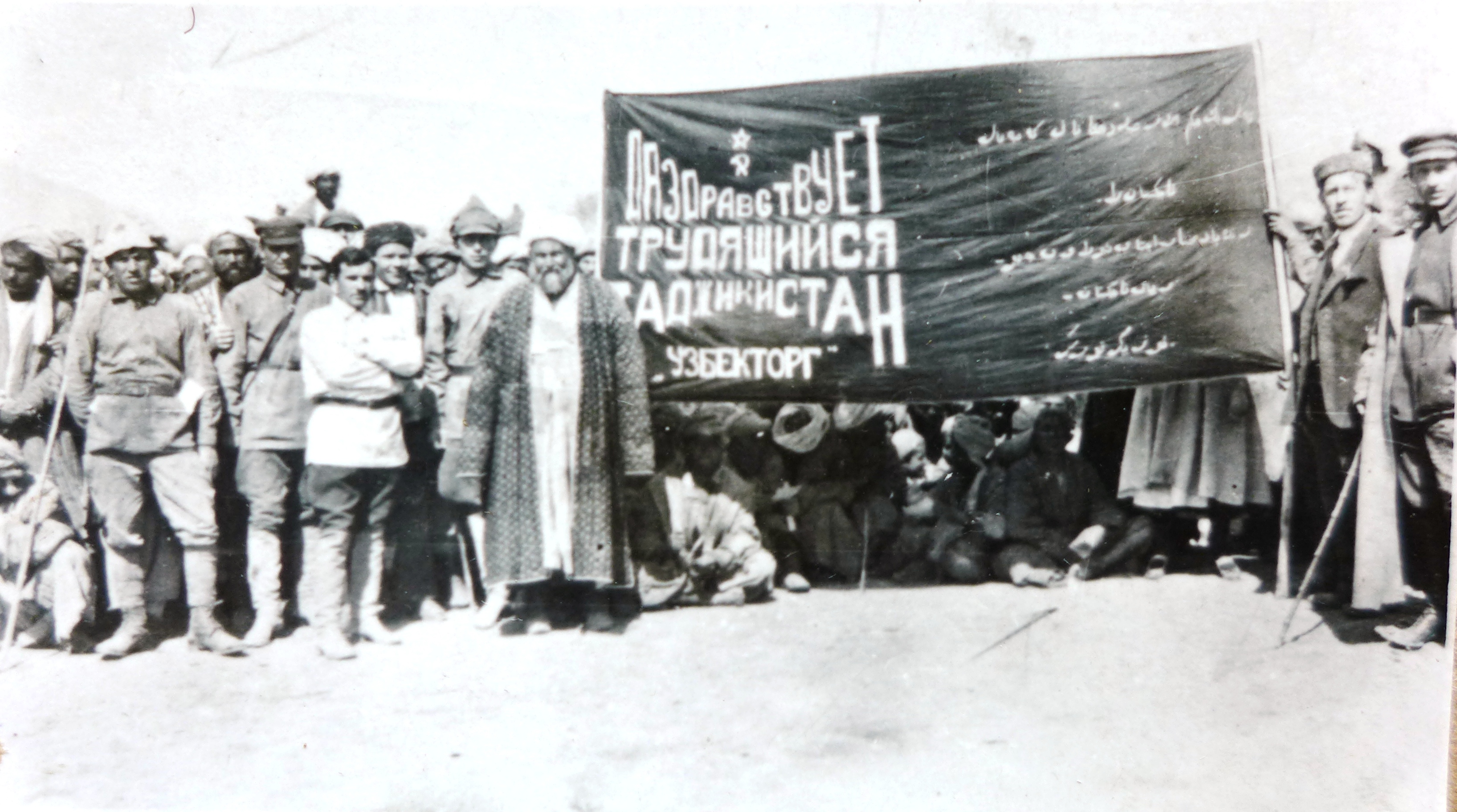 15 марта 1925 года в Дюшамбе. Праздничный транспарант работников «Узбекторга».