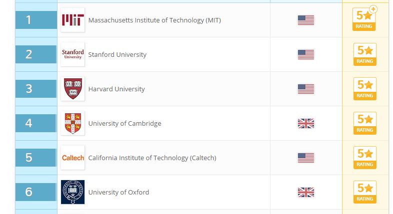 Первое место в мировом рейтинг-листе, как и в прошлом году, получил американский Massachusetts Institute of Technology. На втором месте — Stanford University, а на третьем — Harvard University. Оба расположены в США.
