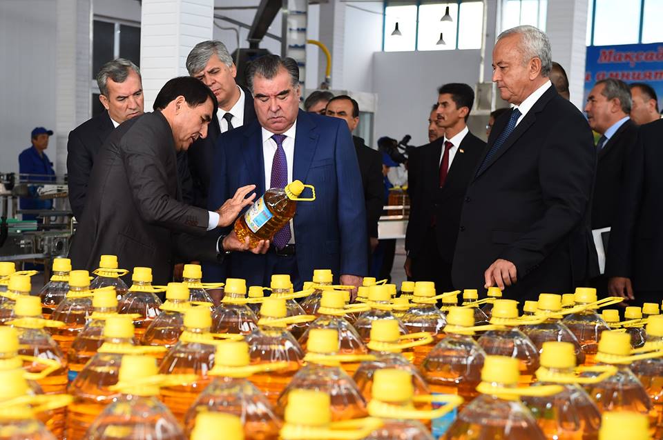 Как сообщает пресс-служба главы государства, Э. Рахмон сдал в эксплуатацию ООО "Предприятие по производству масла «Спитамен Ойл». Его строительство было начато еще в 2010 году. На его возведение потрачено свыше 32 миллионов сомони. В год здесь будет производиться 32тыс. тонны растительного масла.