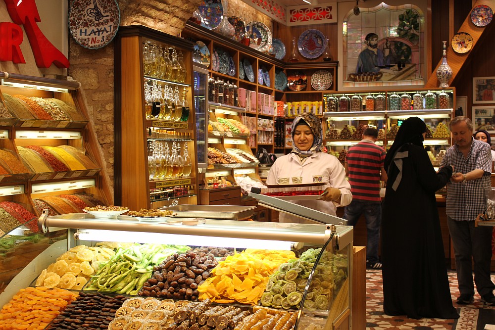 «Специи, сладости, для русских большие скидки», — услышав русскую речь, почти без акцента зазывает нас продавец из-за прилавка, уставленного горами ароматных приправ. Проходим в лавку, но вместо расспросов о товаре, пытаемся узнать о сегодняшней жизни в Стамбуле.