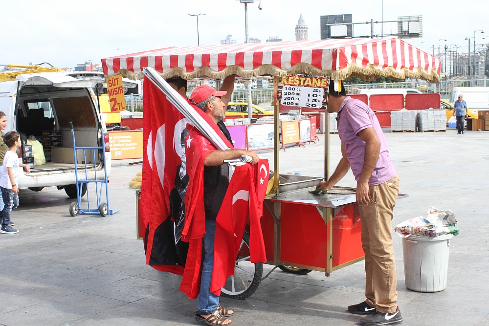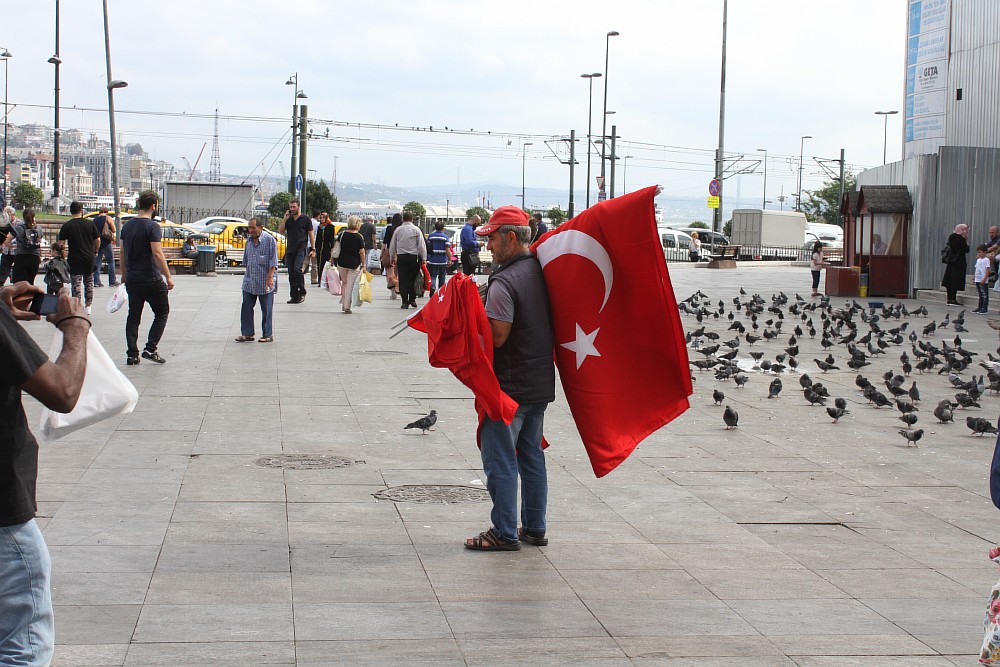 За последние пару месяцев с того момента, как в Турции была сорвана попытка государственного переворота, Стамбул стал буквально утопать в национальных красных флагах со звездой и полумесяцем. Они теперь на каждом шагу: на базарах, кафе, магазинах и жилых домах. Жители Стамбула говорят, что вывешивают свои полотнища добровольно, в знак солидарности с официальной властью страны, но рассказывая об этом, настойчиво просят журналистов, не указывать их имена.