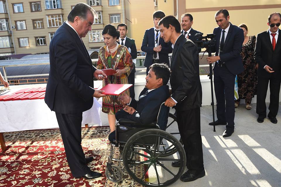 Глава государства подарил квартиры государственным служащим, сотрудникам правоохранительных органов и двум инвалидам, имевшим до сегодняшнего дня проблемы с жильем.