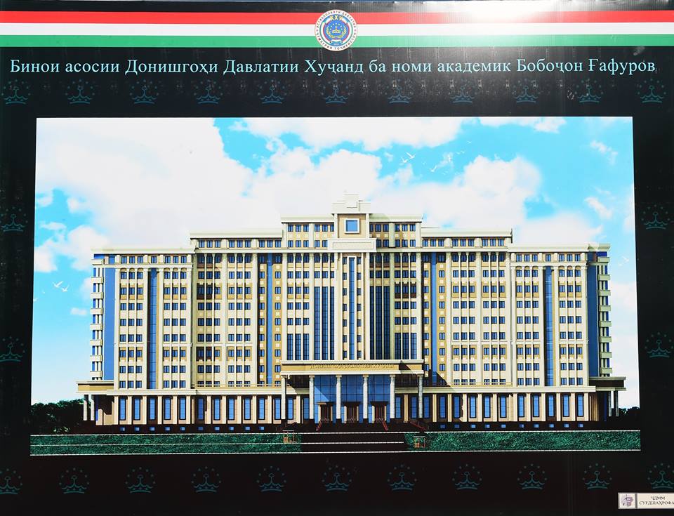 Президент в Худжанде дал старт строительству главного 13-этажного корпуса Худжанского государственного университета имени академика Бободжона Гафурова.