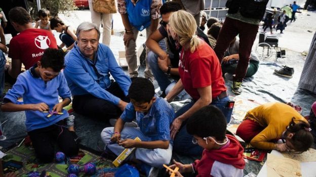 Будучи верховным комиссаром по делам беженцев, Гутерриш неустанно убеждал правительства наиболее развитых и богатых стран мира выделять больше средств и ресурсов на помощь пострадавшим в конфликтах и от стихийных бедствий. "Мы не можем сдержать людей, спасающихся бегством. Они придут. Насколько хорошо мы подготовимся к их приходу, насколько гуманно мы будем действовать по отношению к ним — вот вопрос, который стоит сегодня перед нами", — писал Гутерриш в журнале Time в прошлом году.