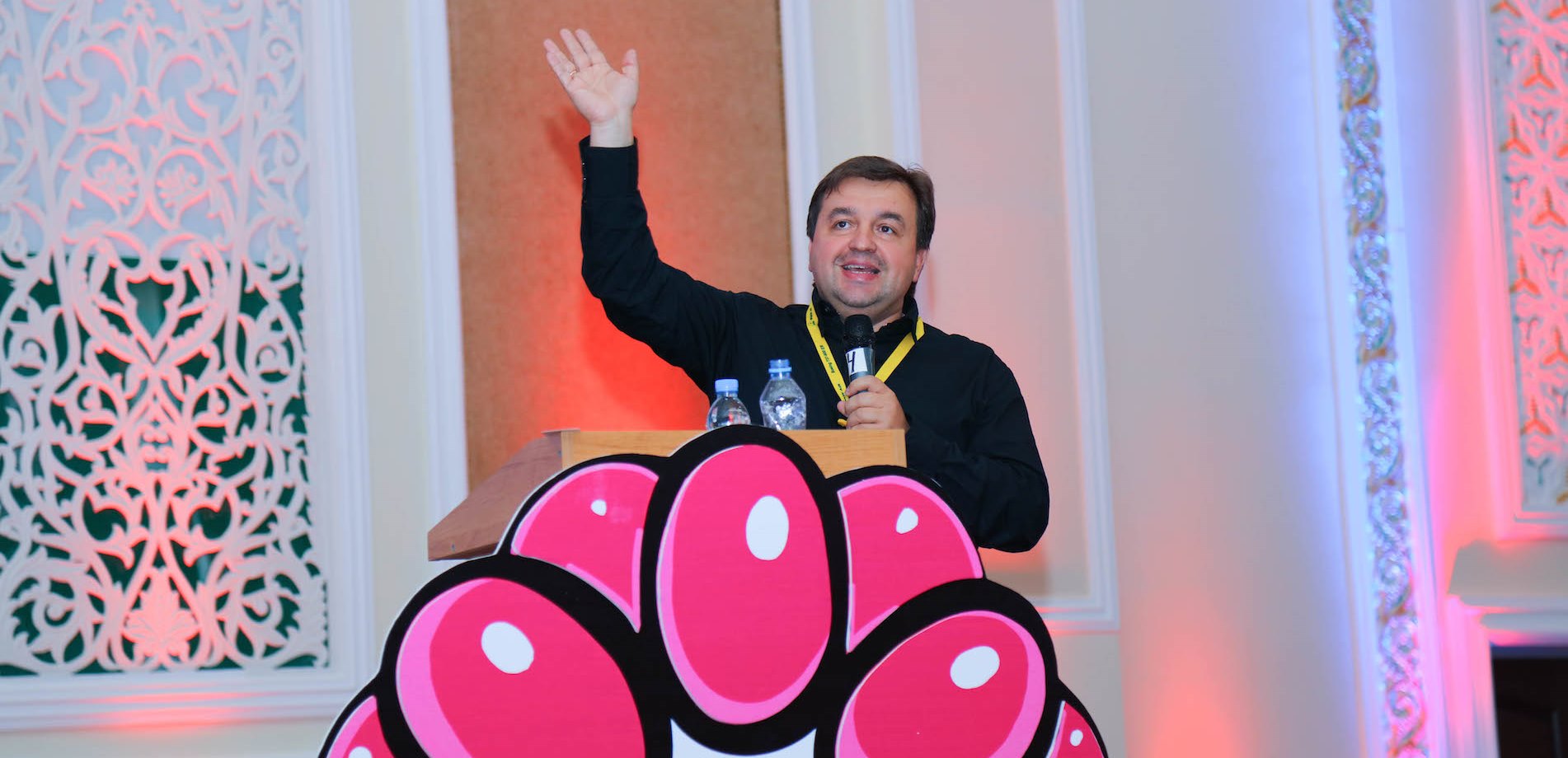 Фируз Хасанов — генеральный директор студии “Устодизайн”, выступил с темой “Маркетинг по-таджикски. Как выжить в современных условиях рынка” и запомнился публике благодаря своему неординароному подходу к работе.