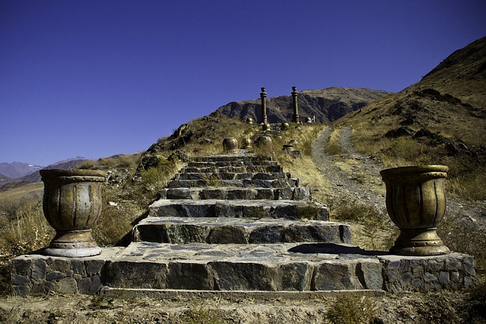 Теперь в Каррон подниматься никто не боится. Нуриддин говорит, что археологи работают здесь все лето, часто сюда приезжают западные туристы. Конечно, у неподготовленных посетителей внешний вид этого места не вызовет бешеного восторга – над фрагментами пятикупольного храма огня все еще работают исследователи, и пока он представляет собой полуразрушенное сооружение из кирпича, который обжигался в печах при мастерских, расположенных тут же.