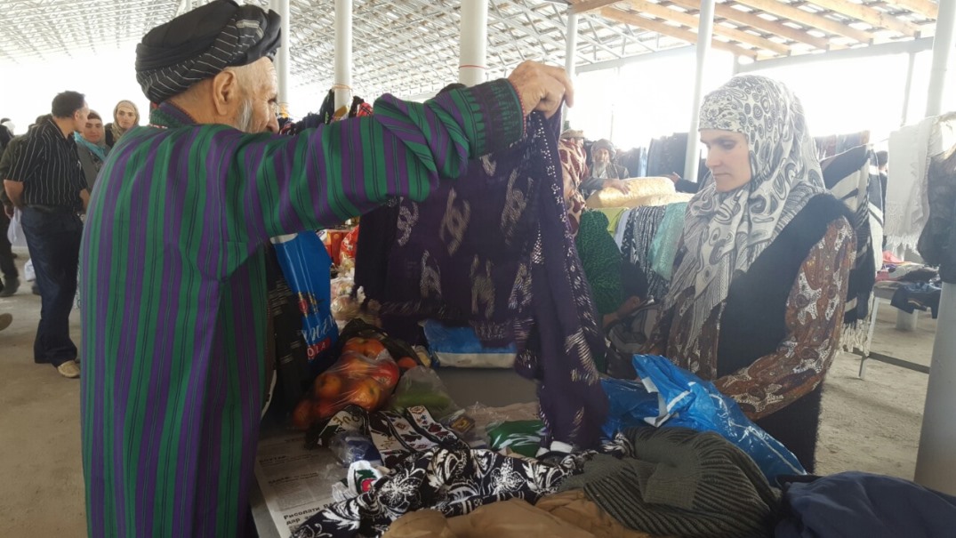— У афганцев денег нет, поэтому мы торгуем секонд-хендом, — говорит она, но тут же добавляет: – Нет, этот платок для жены учителя — совершенно новый. Тридцать сомони!
