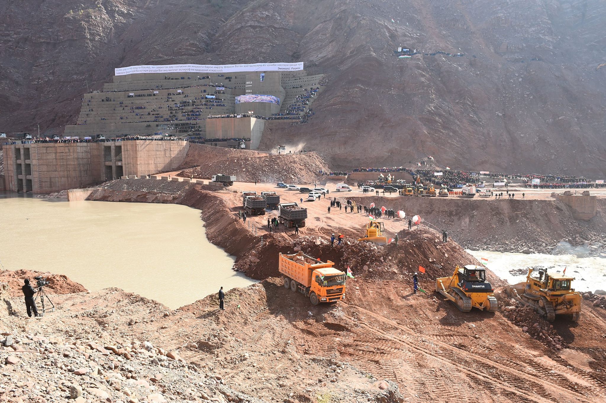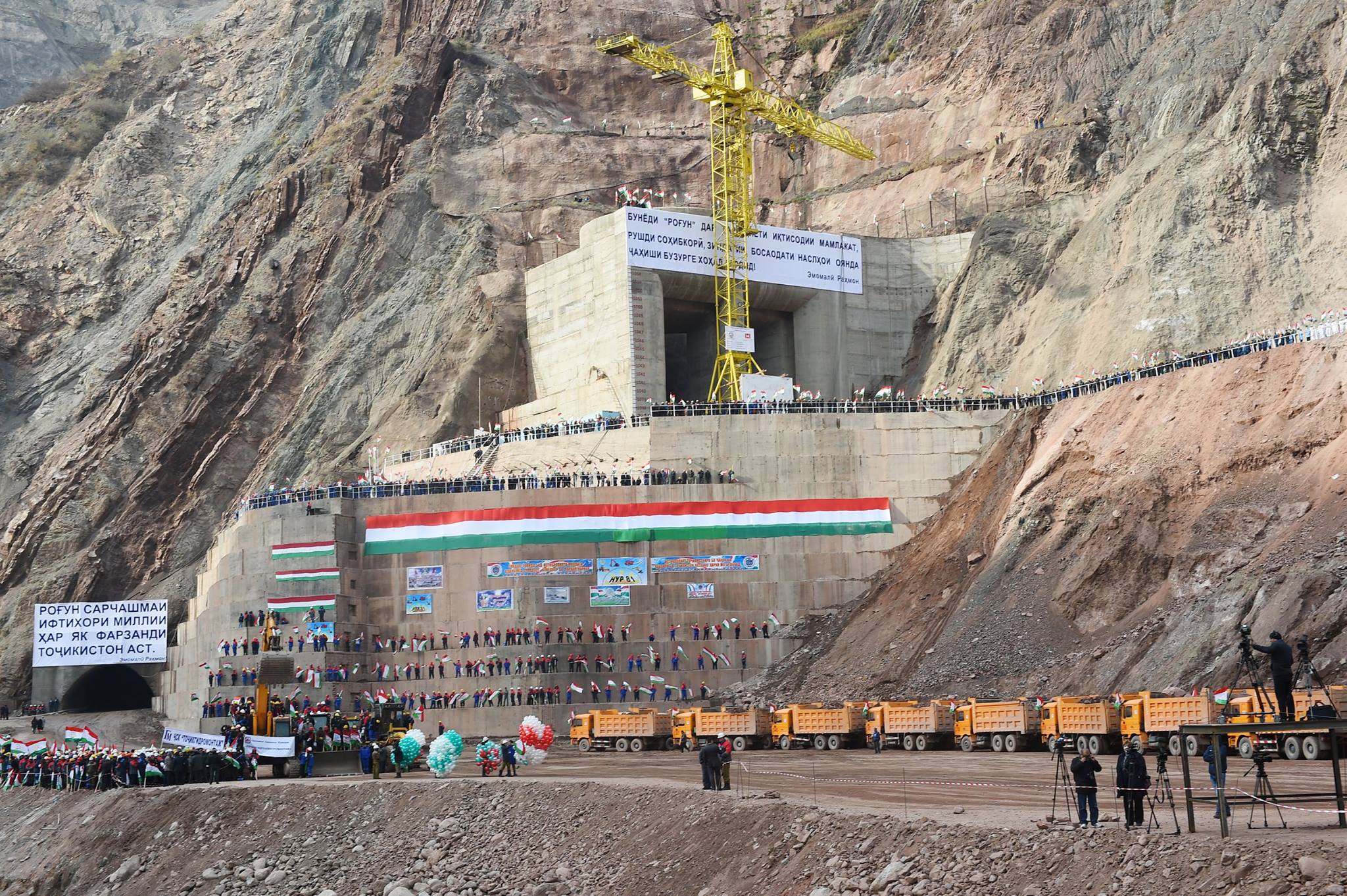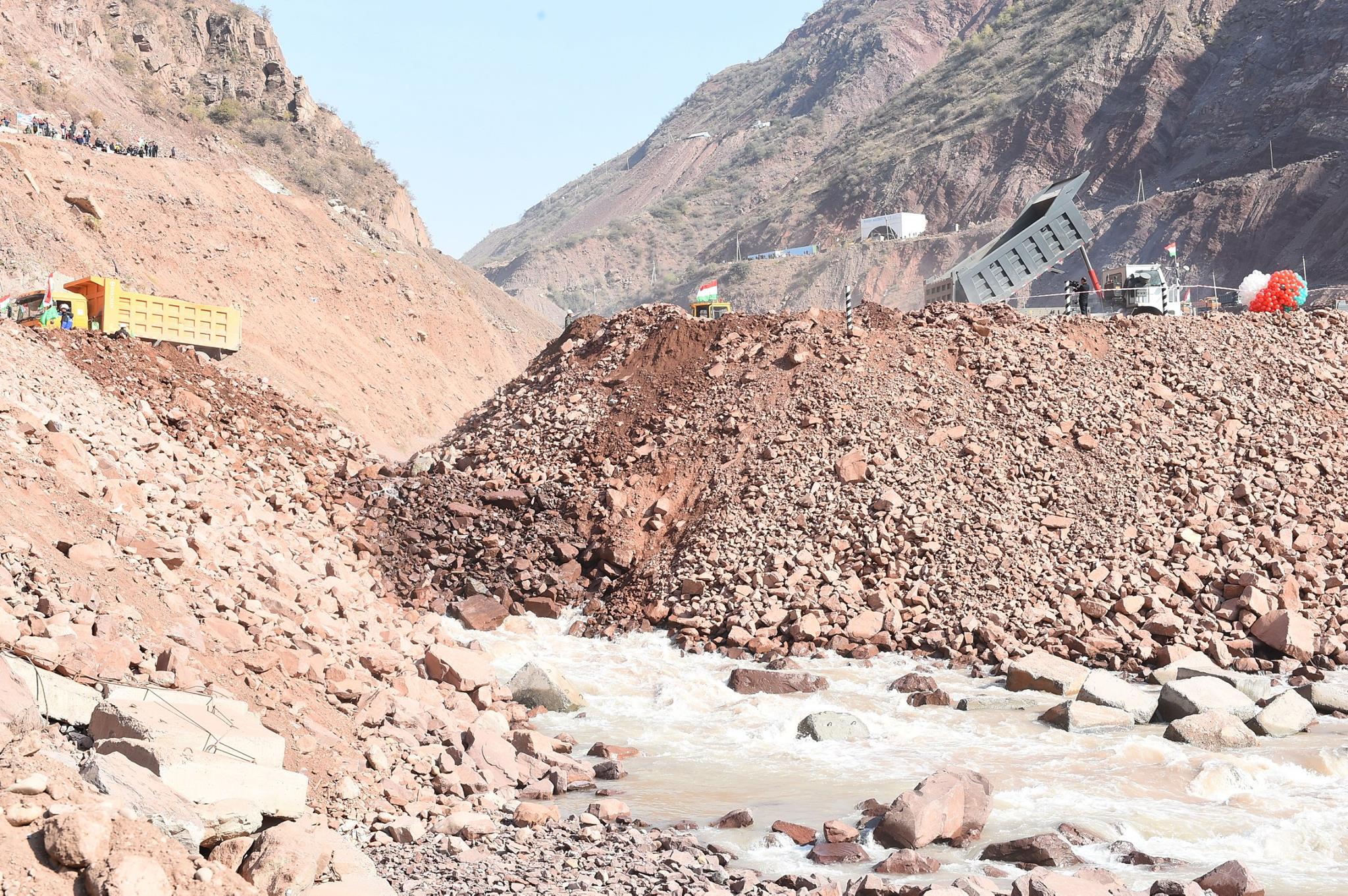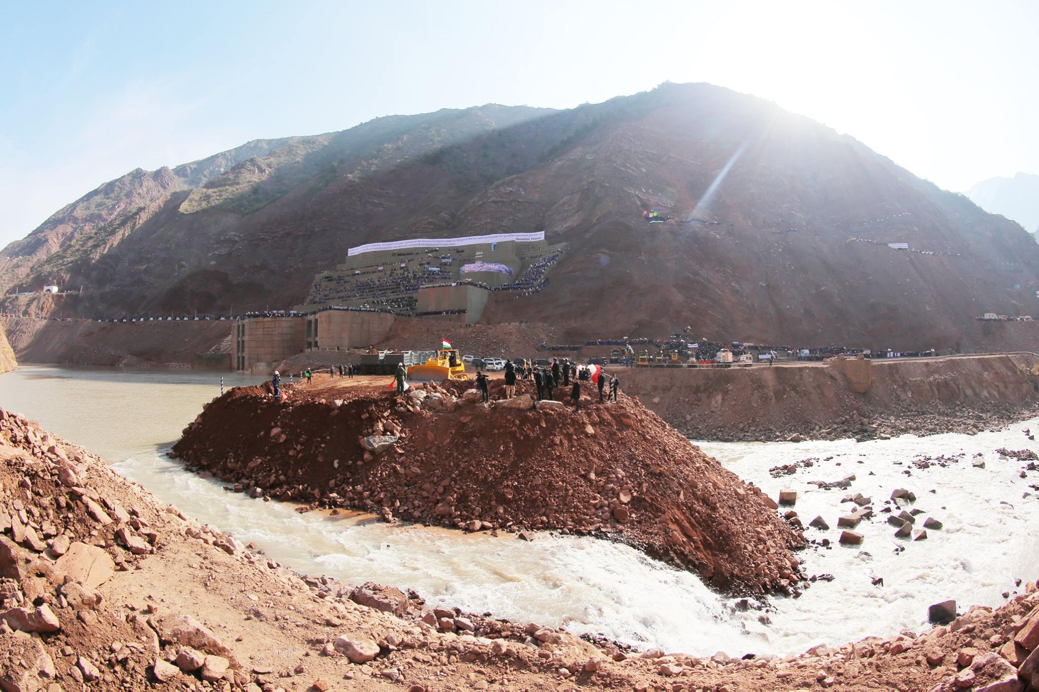 В Таджикистане 29 октября началось строительство самой высокой в мире каменно-насыпной плотины Рогунской ГЭС. Для начала строительства дамбы ГЭС перекрыли реку Вашх.