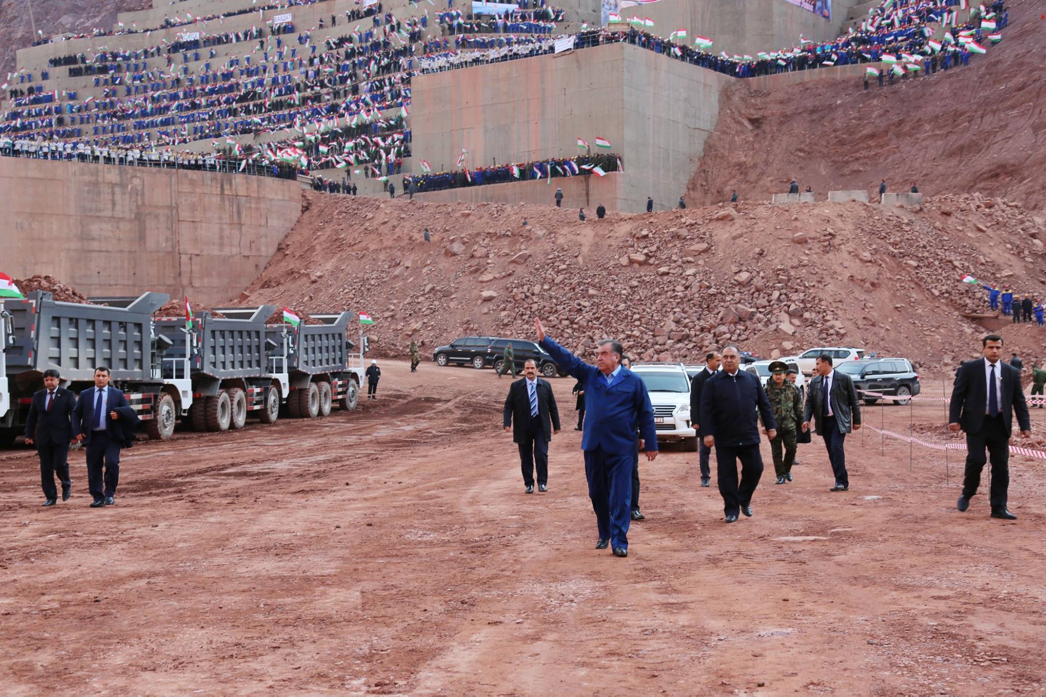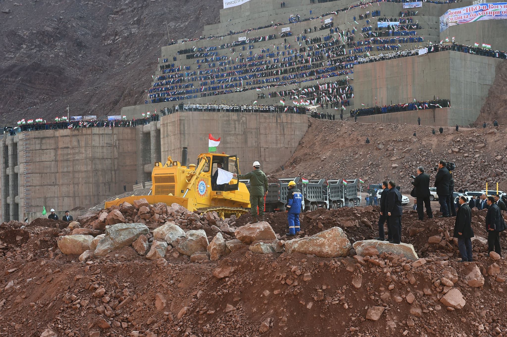Церемония официального начала строительства плотины Рогунской гидроэлектростанции состоялась сегодня, 29 октября в городе Рогуне на берегу реки Вахш. Как сообщает пресс-служба президента РТ, в церемонии начала работ принял участие глава государства Эмомали Рахмон, члены таджикского правительства, депутаты обеих палат парламента, представители интеллигенции и молодежи.