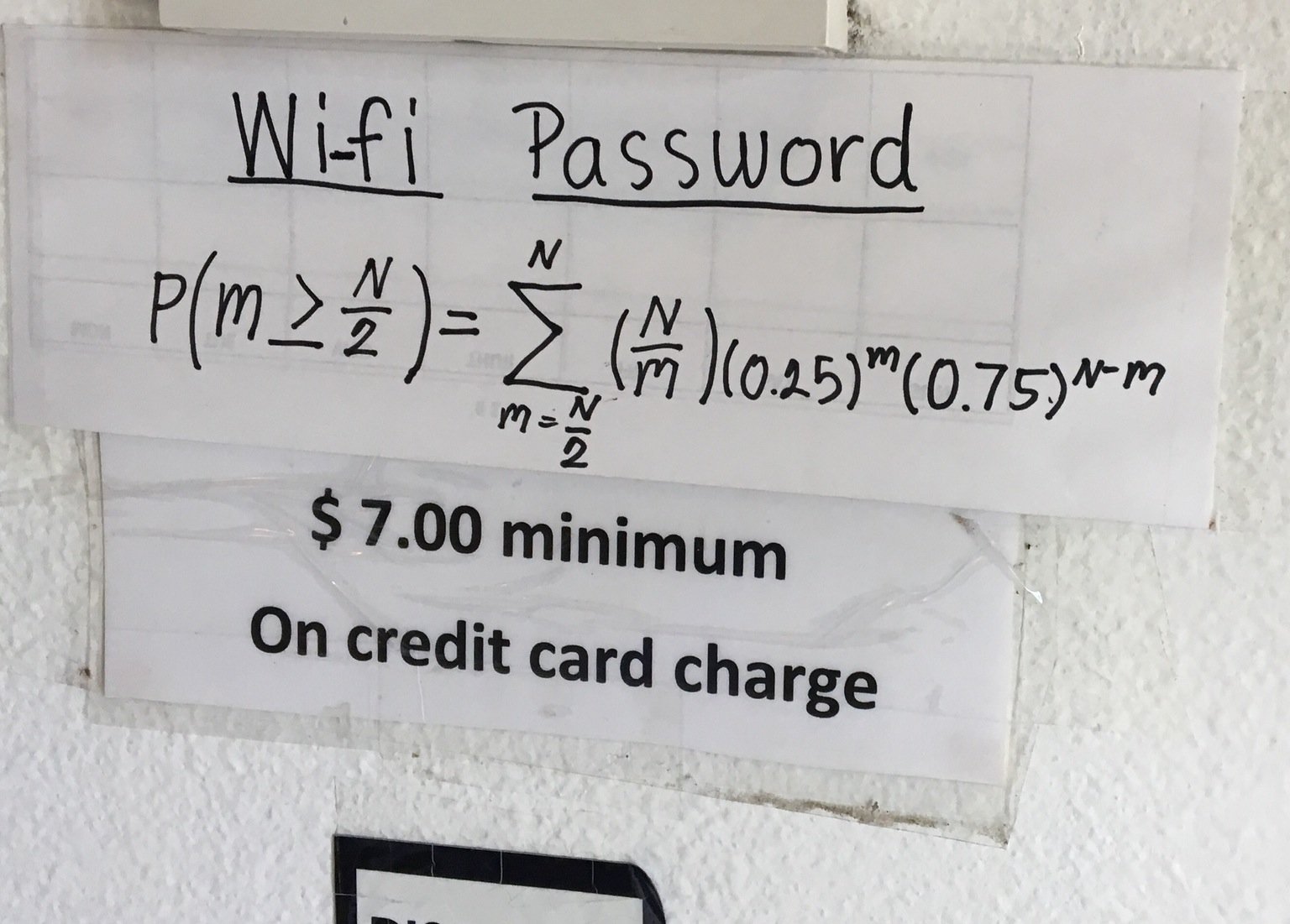 Тайский ресторан «Yayaʼs» в Сан-Антонио (штат Техас) предложил клиентам решить сложное уравнение с функцией, чтобы узнать пароль от бесплатного Wi-Fi. На объявление обратил внимание пользователь Reddit Joshua_Glock.