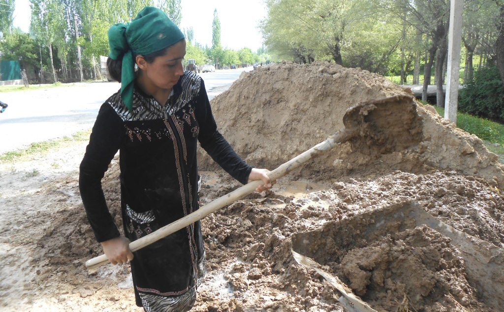 Жительницы Ховалингского района давно приучены к самой тяжелой работе; чтобы заработать семье на жизнь, они берутся даже за мужскую работу — изготовление тандыров и производство глиняных кирпичей.