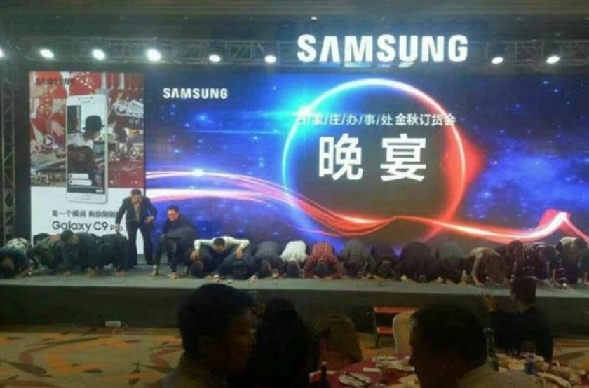 На мероприятии, прошедшем в китайском городе Шицзячжуан, 23 топ-менеджера компании Samsung на сцене опустились на колени перед инвесторами и покупателями. Так они извинились за ситуацию с отзывом Samsung Galaxy Note 7 и пообещали, что впредь такое не повторится, сообщает Techmundo.