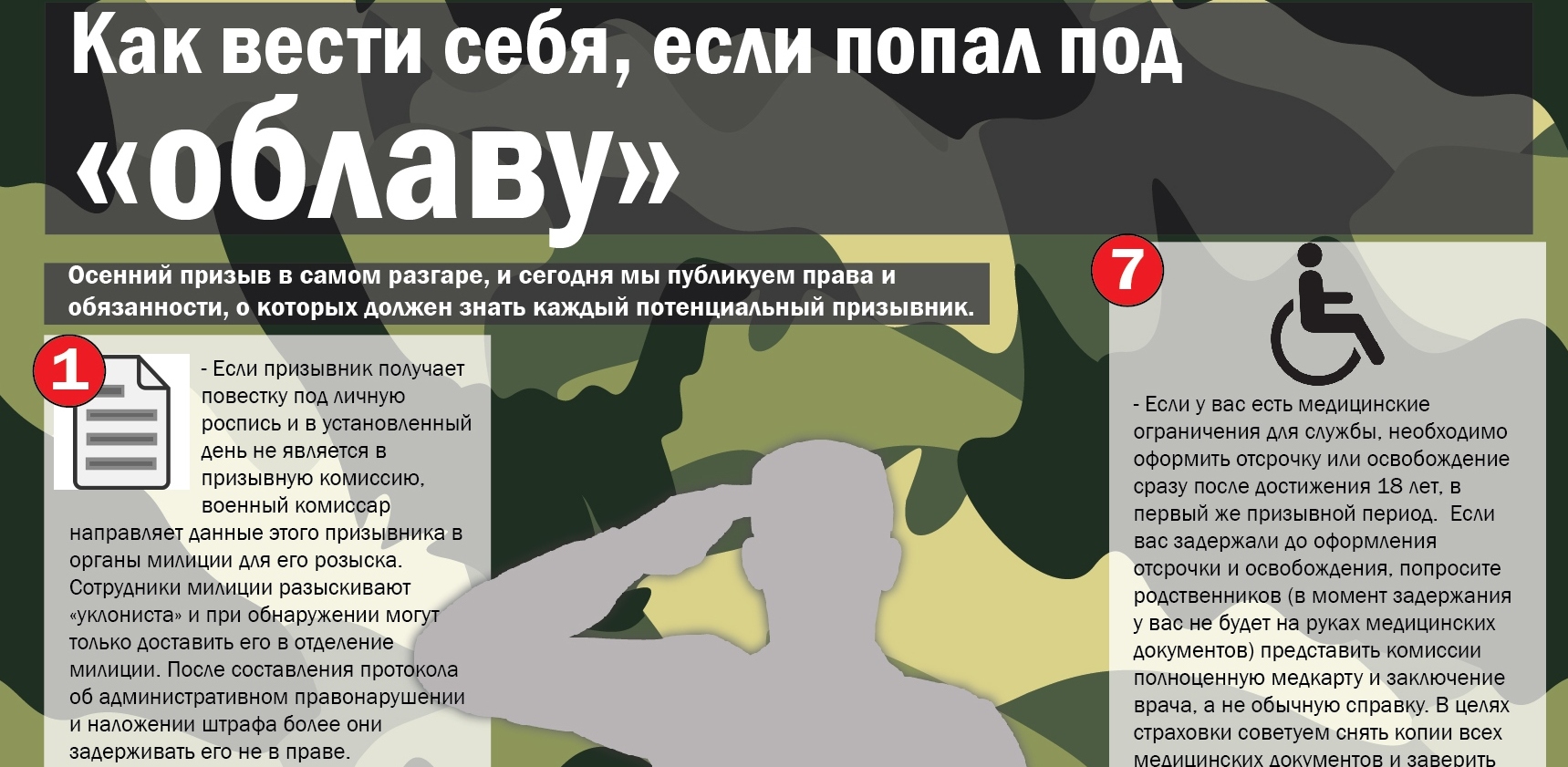 Принудительное доставление призывника в военкомат (под любым предлогом) незаконно! Обо всех своих правах вы можете узнать в новых правилах, составленных «АП» специально для вас.