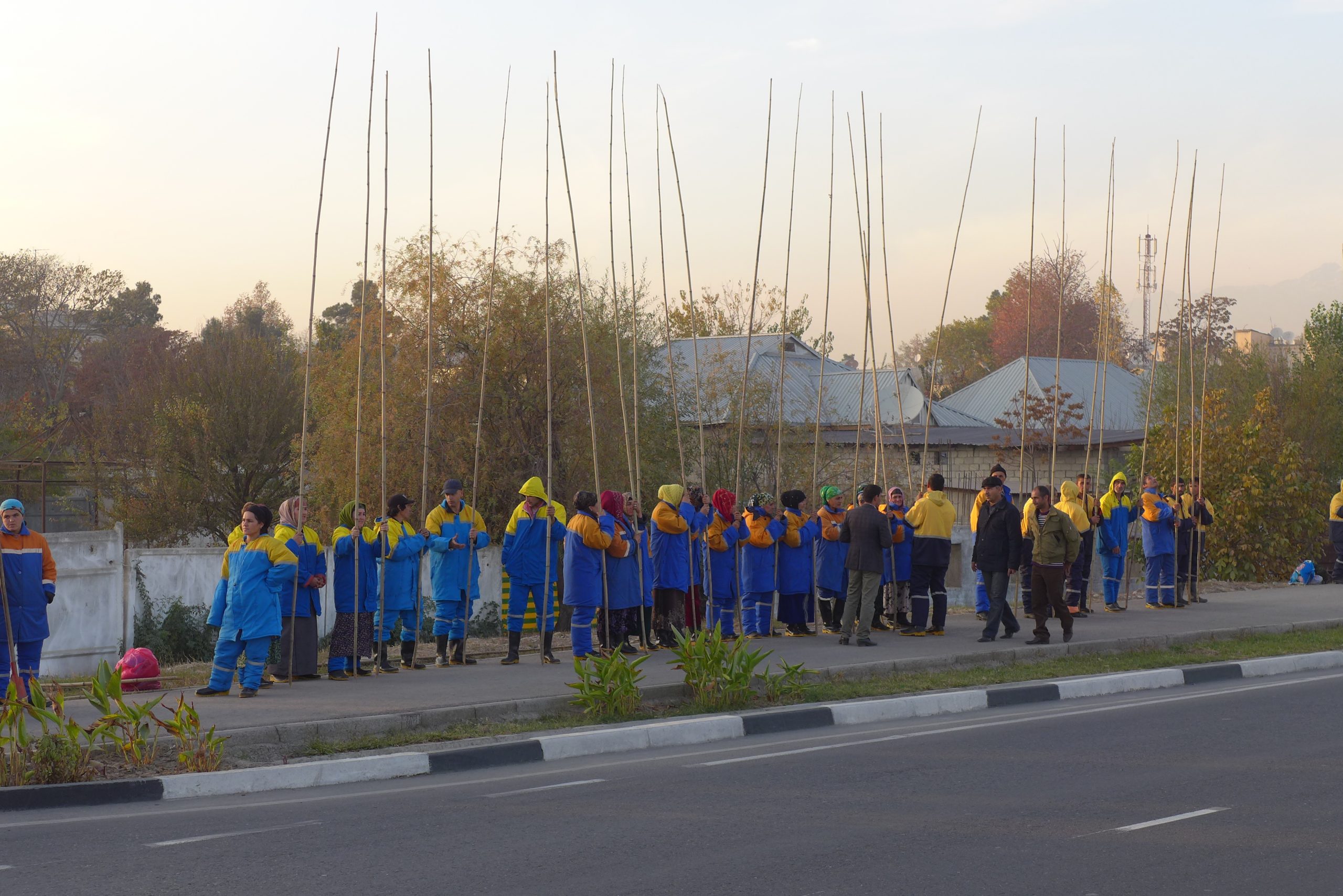 Сегодня руководство города собрало сотрудников городских коммунальных служб: проверку прошла как техника, так и весь «личный состав». Женщин-дворников «оборудовали» бамбуковыми палками, ими они должны будут счищать с верхушек деревьев мокрый снег.