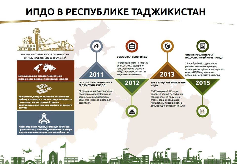 Свою готовность к осуществлению реформ в данном секторе правительство Таджикистана выразило в 2012 году, когда заявило о готовности к присоединению к Инициативе прозрачности добывающих отраслей (ИПДО).