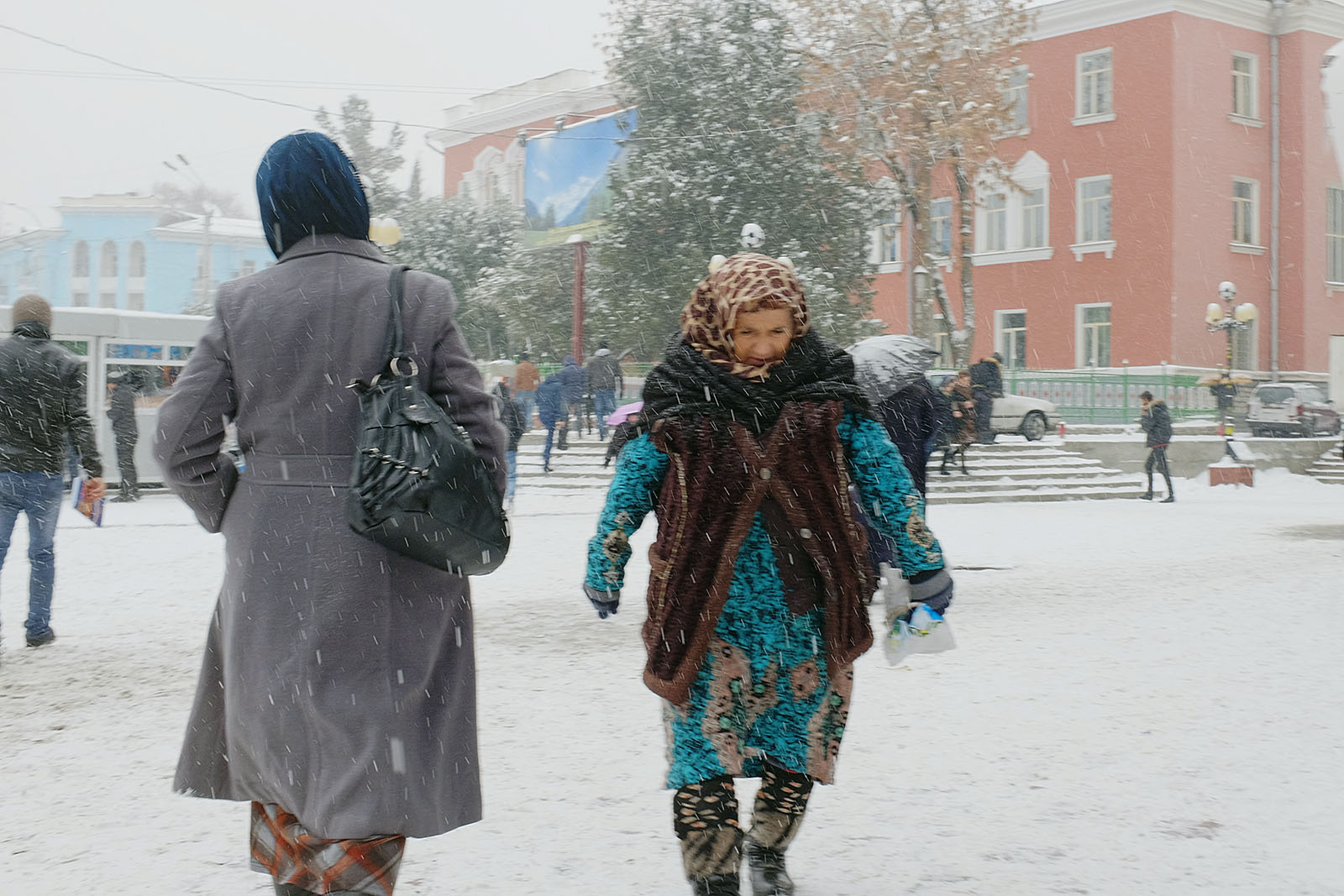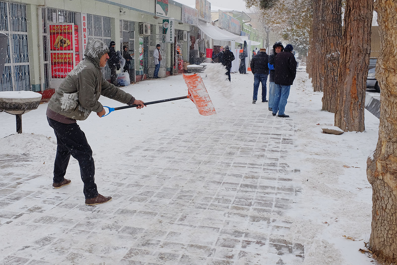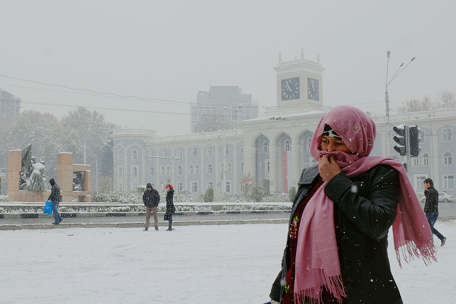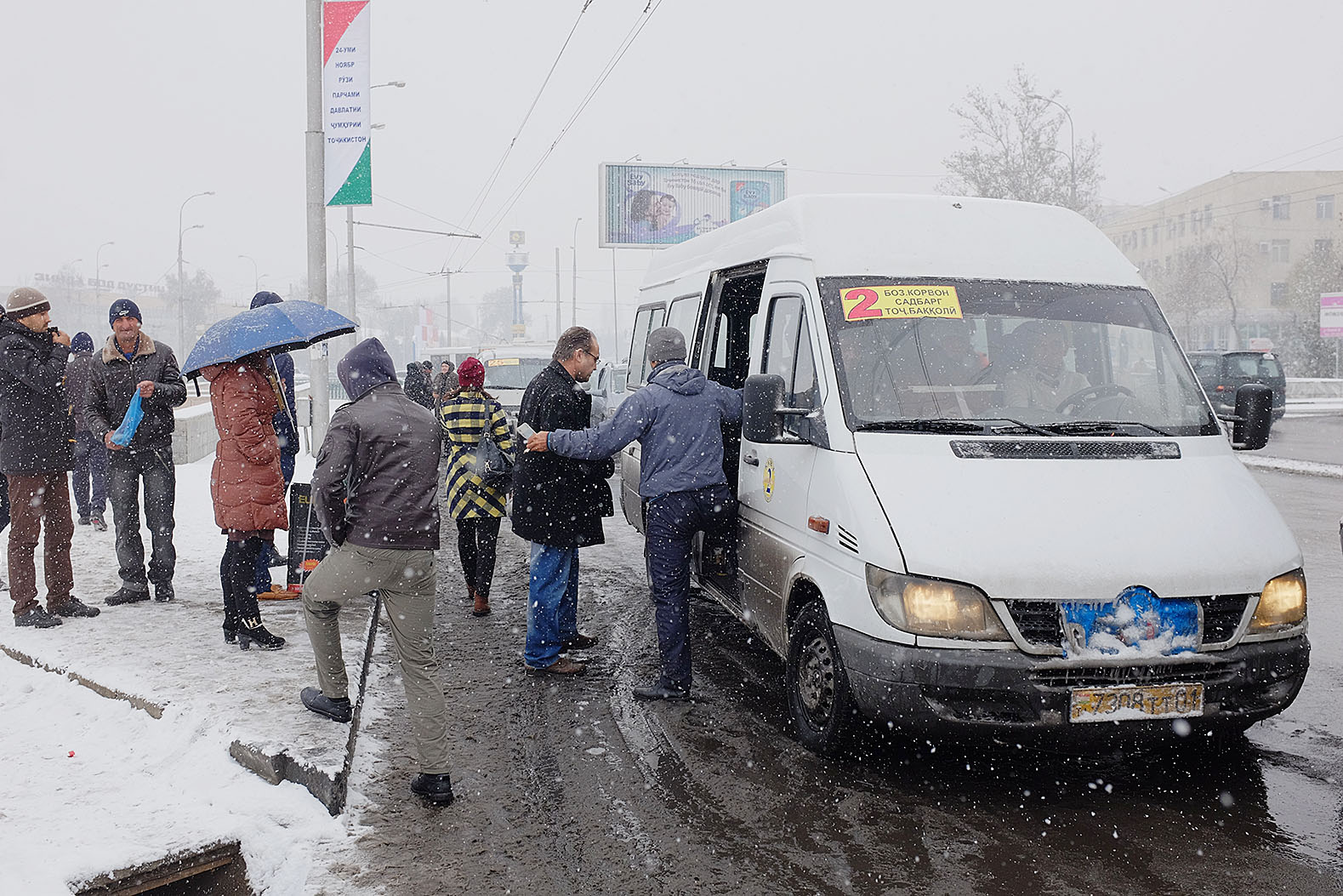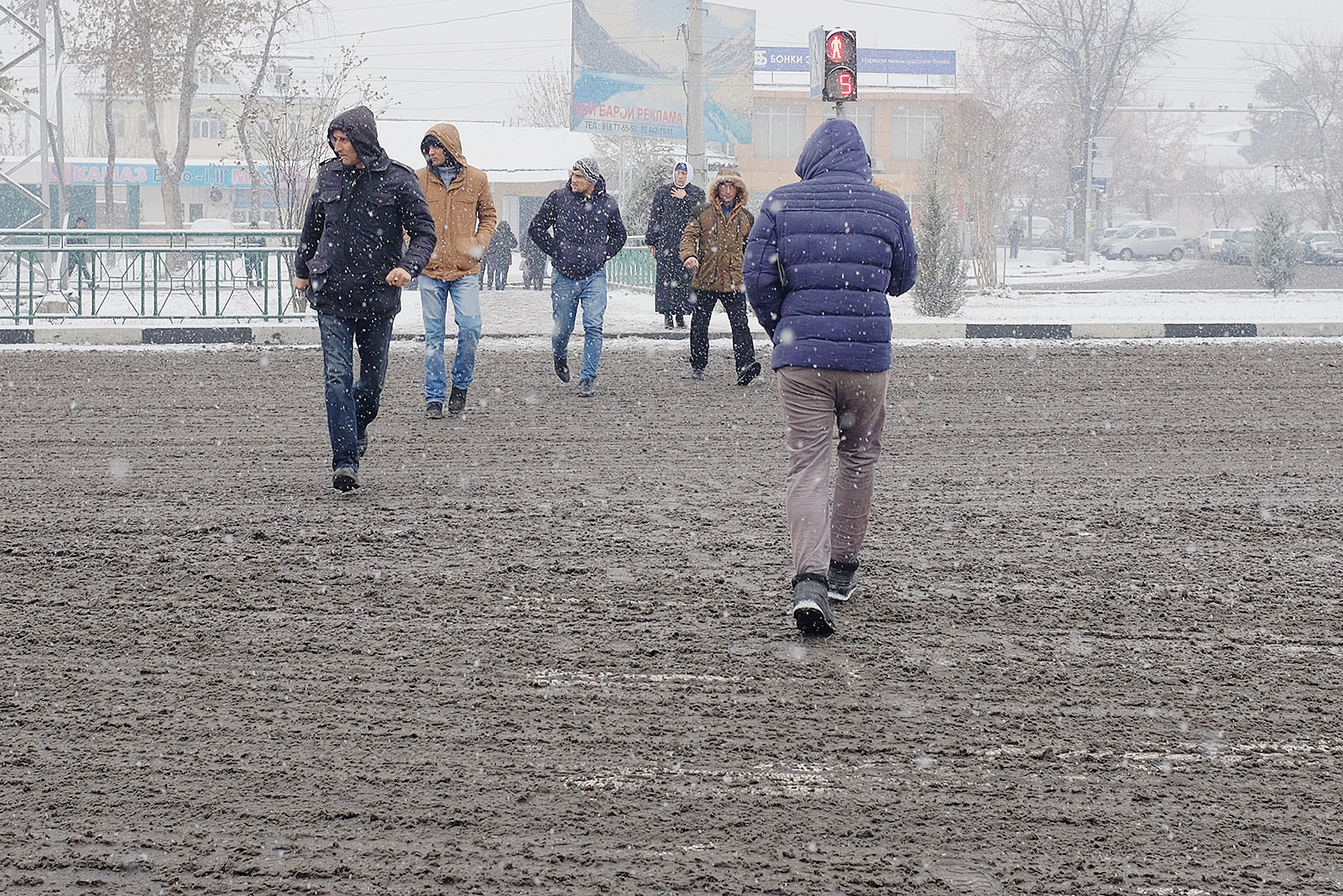 Привыкшие к теплой осени и поздней неснежной зиме душанбинцы уже неделю никак не адаптируются к холоду. Легкие осенние куртки и обувь – так одеты большинство местных жителей, вынужденных стоять в ожидании общественного транспорта или идти за покупками. Сложнее всего приходится уличным торговцам, которые пытаются обогреться всеми подручными средствами. Сегодняшние дороги напоминают сплошное месиво из грязи и снега. Потепление обещают только в начале следующей неделе.
