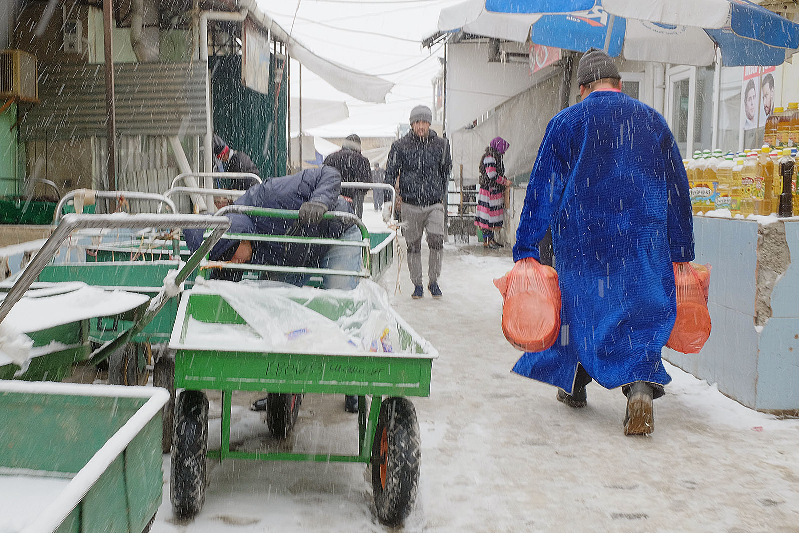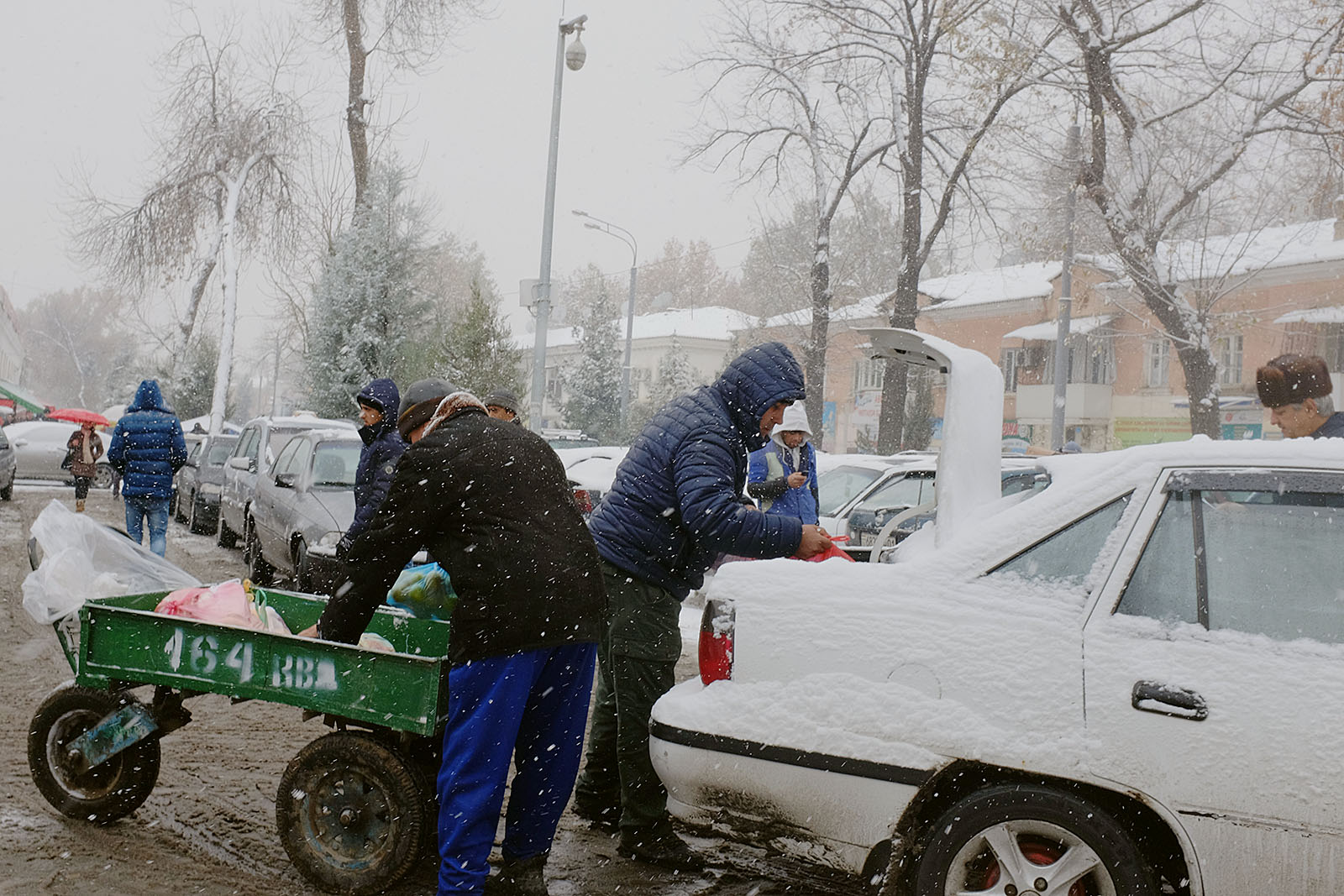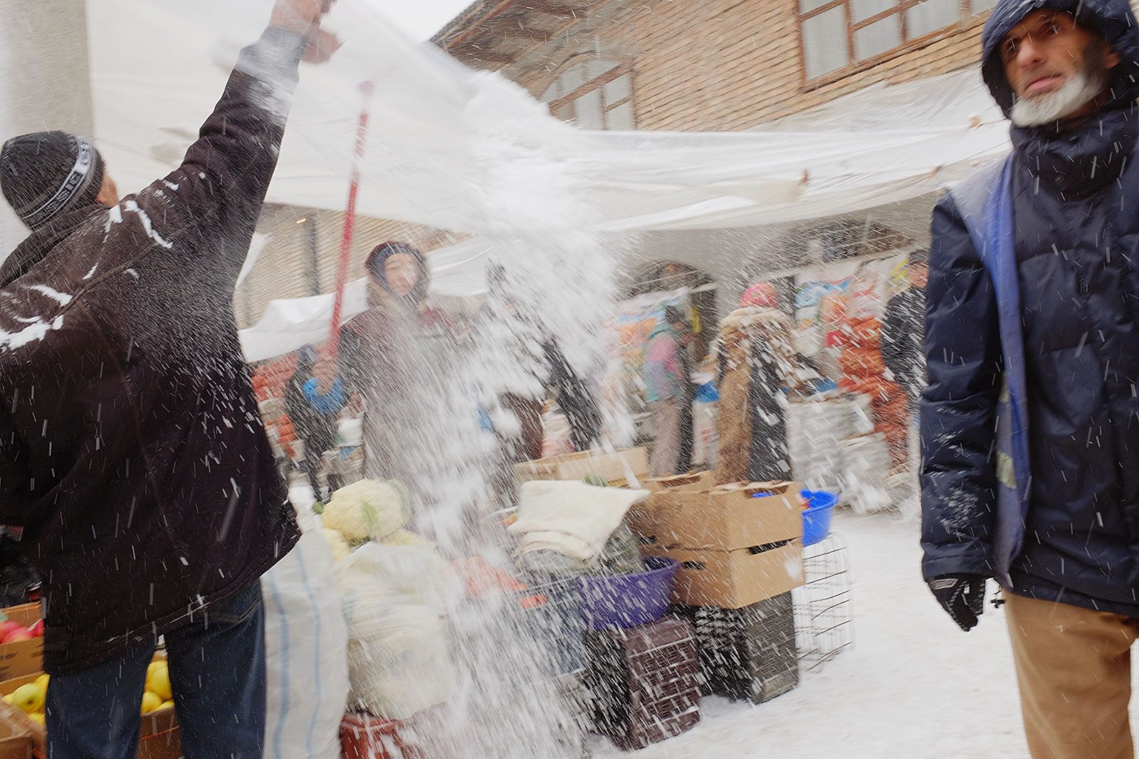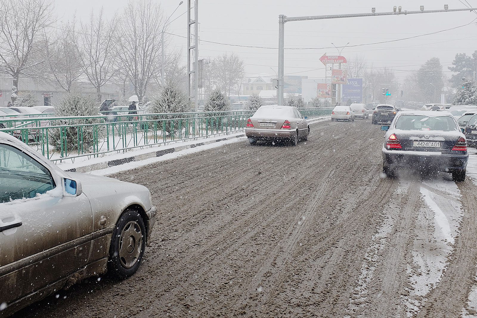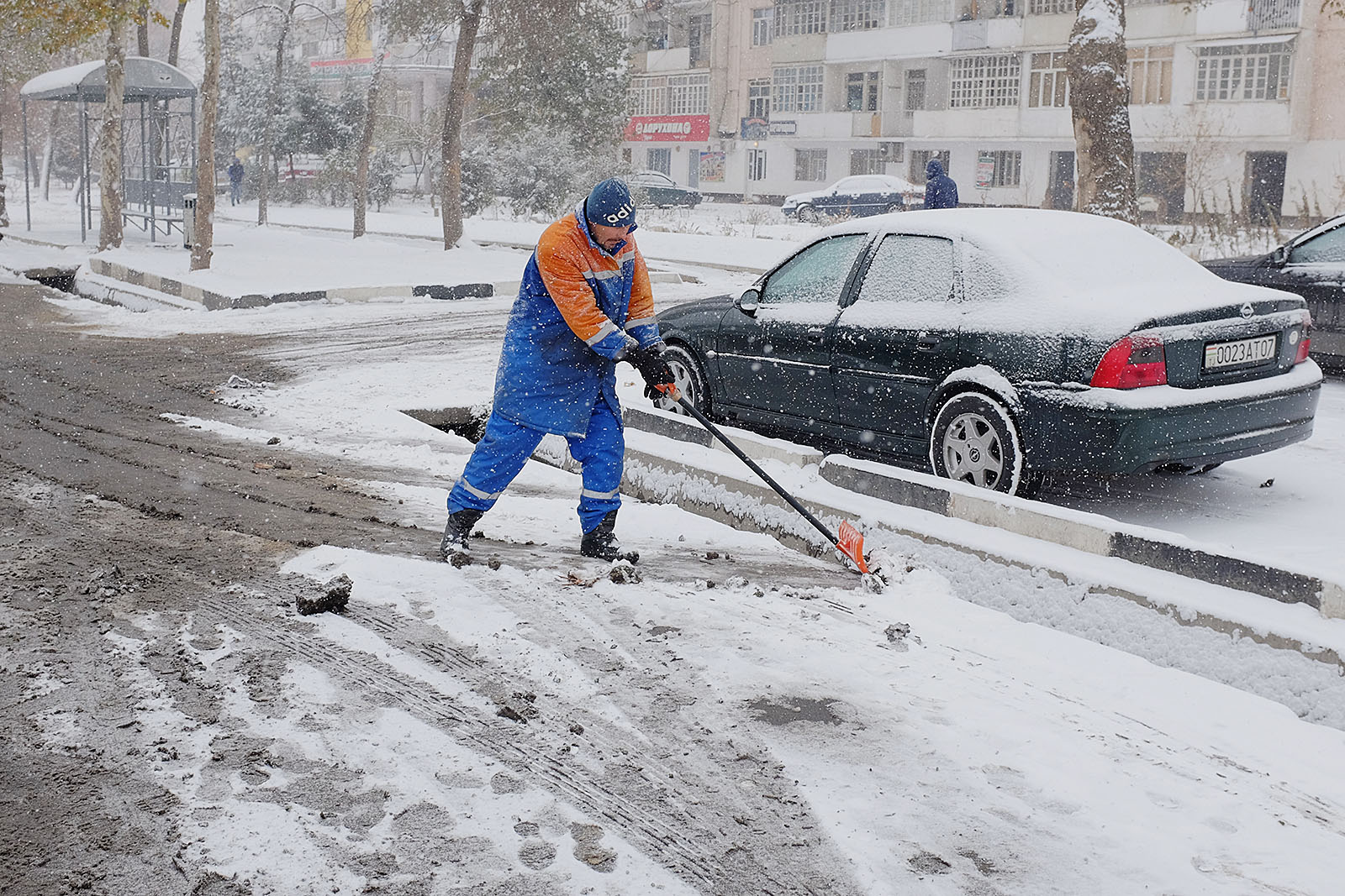 Привыкшие к теплой осени и поздней неснежной зиме душанбинцы уже неделю никак не адаптируются к холоду. Легкие осенние куртки и обувь – так одеты большинство местных жителей, вынужденных стоять в ожидании общественного транспорта или идти за покупками. Сложнее всего приходится уличным торговцам, которые пытаются обогреться всеми подручными средствами. Сегодняшние дороги напоминают сплошное месиво из грязи и снега. Потепление обещают только в начале следующей неделе.