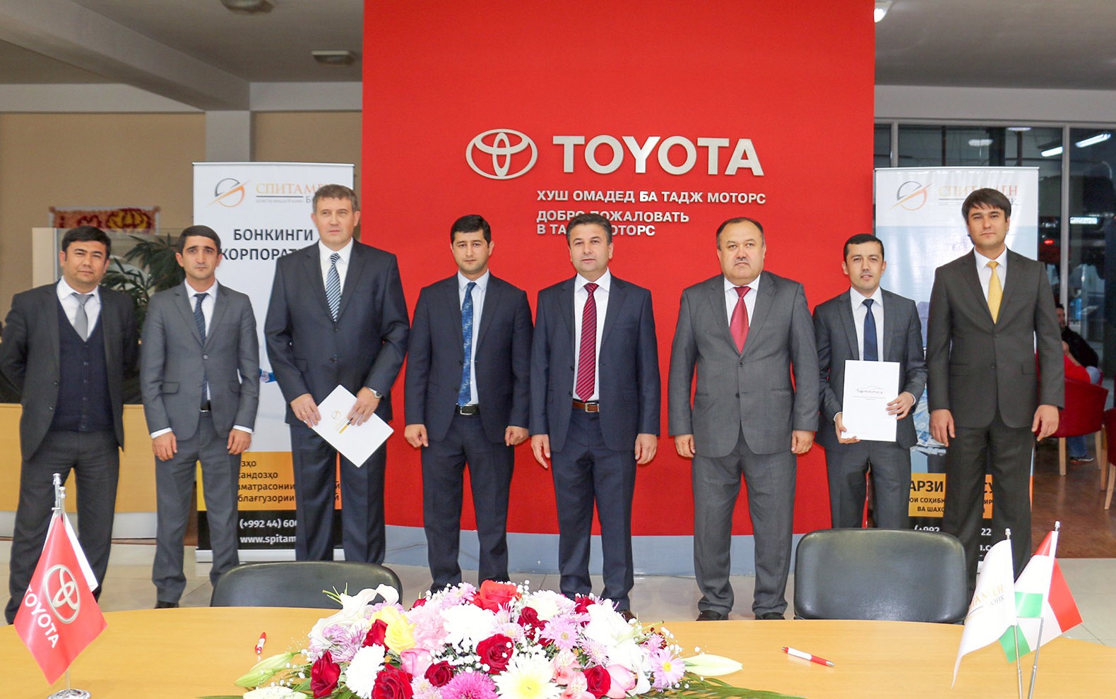 «Спитамен Банк» совместно с компанией «Тойота Центр Душанбе «Тадж Моторс», официальным представителем «Тойота Мотор Европа» в Республике Таджикистан и страховой компанией «Спитамен Сугурта» запустил новый кредитный продукт – автокредитование. Соглашение об этом было подписано в офисе «Тадж Моторс» 17 ноября.
