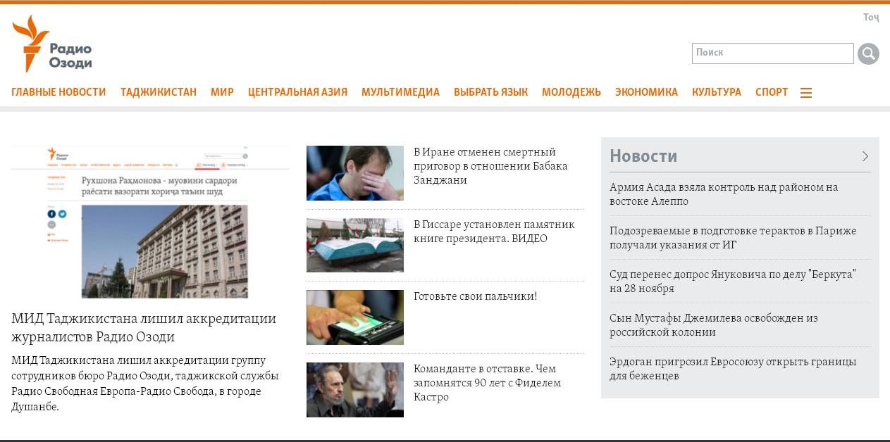 По данным руководства Радио Свобода, в начале месяца власти Таджикистана потребовали у Радио Озоди удалить с сайта информацию о том, что посольство США в Душанбе предупредило живущих в Таджикистане американцев о возможных терактах в стране и призвало их к бдительности.