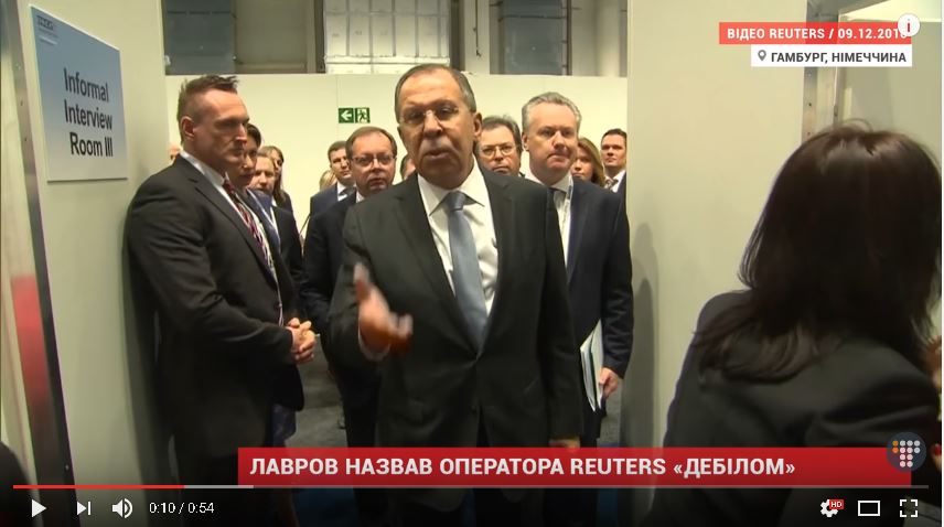 Министр иностранных дел России Сергей Лавров назвал оператора информагентства Reuters «дебилом». Это произошло 9 декабря в Гамбурге, где министр находился на встрече Совета министров иностранных дел ОБСЕ.