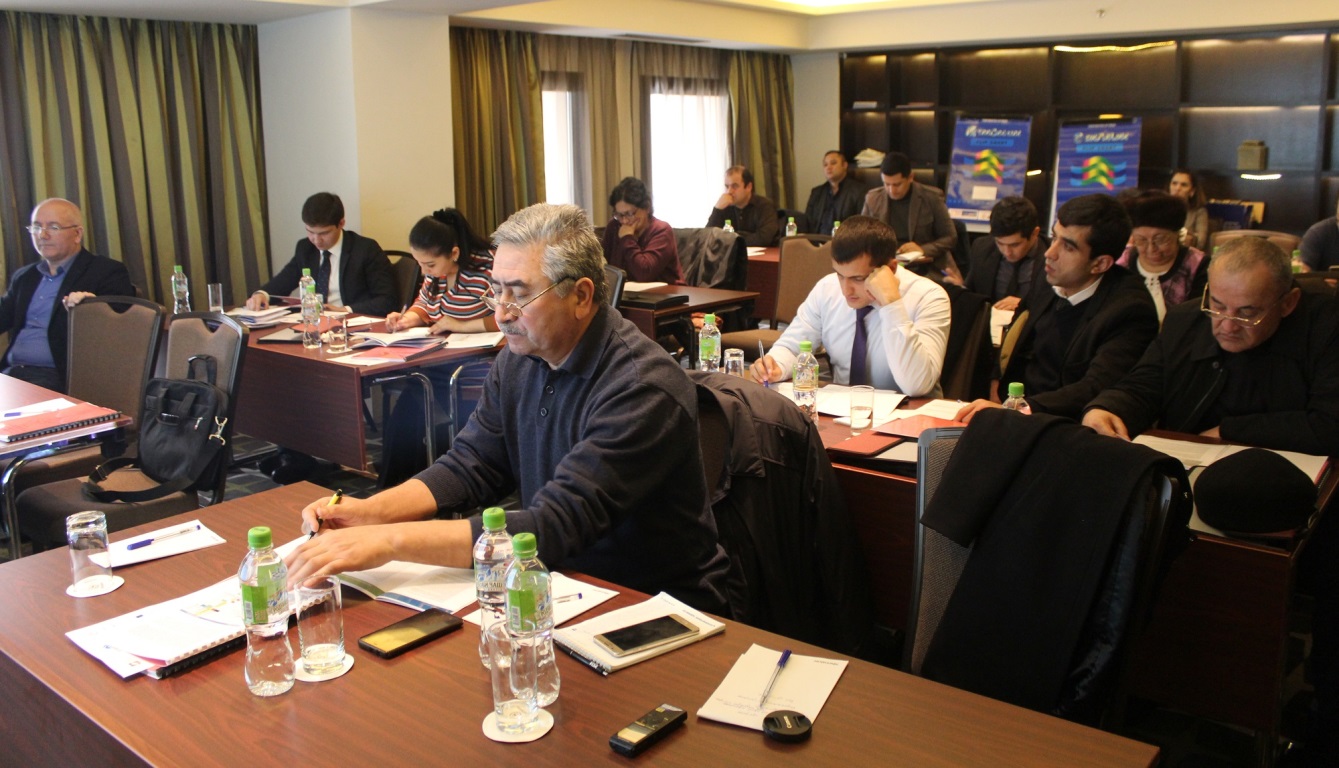 Участниками тренинга стали более 20 человек из числа Многосторонней группы и Всемирного банка, а тенерами выступили профессор Ингилаб Ахмедов Директор Евразийского Тренингового Центра (Азербайджан) и Азер Мехтиев глава ОО «Содействие экономическим инициативам» (Азербайджан).