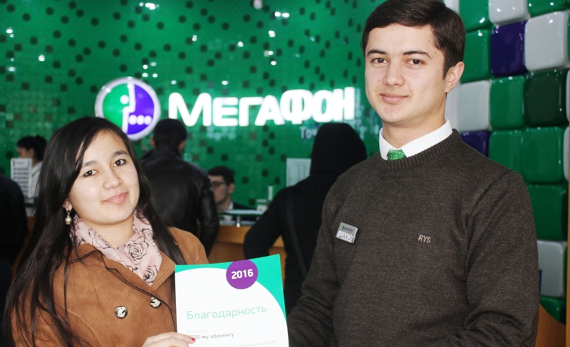 Своих новых тысячных и двухтысячных абонентов «МегаФон Таджикистан» награждает каждую неделю. Подарочные сертификаты «юбилярам» вручаются в столице и в трех регионах республики – г. Душанбе и РРП, Согдийской области и Хатлоне.