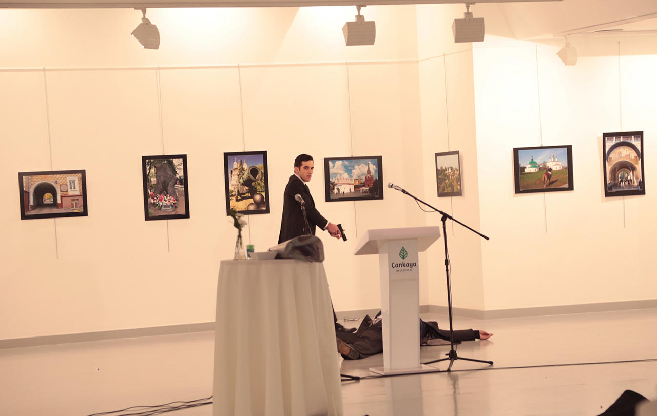Посол РФ в Турции Андрей Карлов был убит 19 декабря в художественной галерее в Анкаре, где он присутствовал на открытии выставки. Посла застрелил 22-летний сотрудник полиции Анкары Мевлют Алтынташ. Нападавший был убит полицией. Мотивы Алтынташа пока неизвестны, сообщается, что перед тем, как отрыть огонь по послу он упоминал сирийский Алеппо и выкрикивал исламистские лозунги.