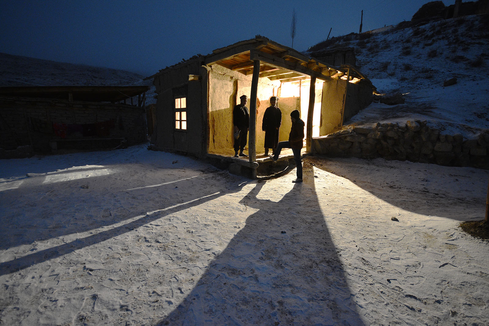 «Пойдемте, для вас место уже готово», — зовет нас после ужина хозяин дома в горно-матчинском кишлаке. Время на часах что-то около восьми, в Гувинде уже непроглядная тьма; тихо, потому что это кишлак и потому что на него сыплются крупные хлопья снега. Мы идем за мужчиной, нужно выйти из кибитки, в которой мы ужинали, подняться наверх по склону горы, потом спуститься вниз и еще раз подняться. Место ночлега тут — в другой кибитке. Хозяин дома, в махси и галошах сверху, лихо добирается до нее по снежному склону, мы ползем сзади почти на четвереньках. «Я привык», — поясняет он.